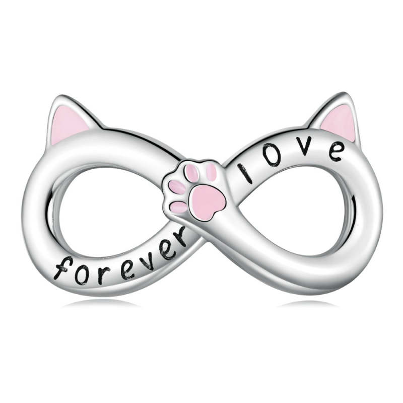 Infinito Gatos Esmalte Charm Regalo de plata para amantes de las mascotas