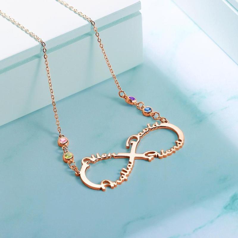 Collar Infinito con Collar Personalizado con Piedra de Nacimiento Chapado en Oro Rosa