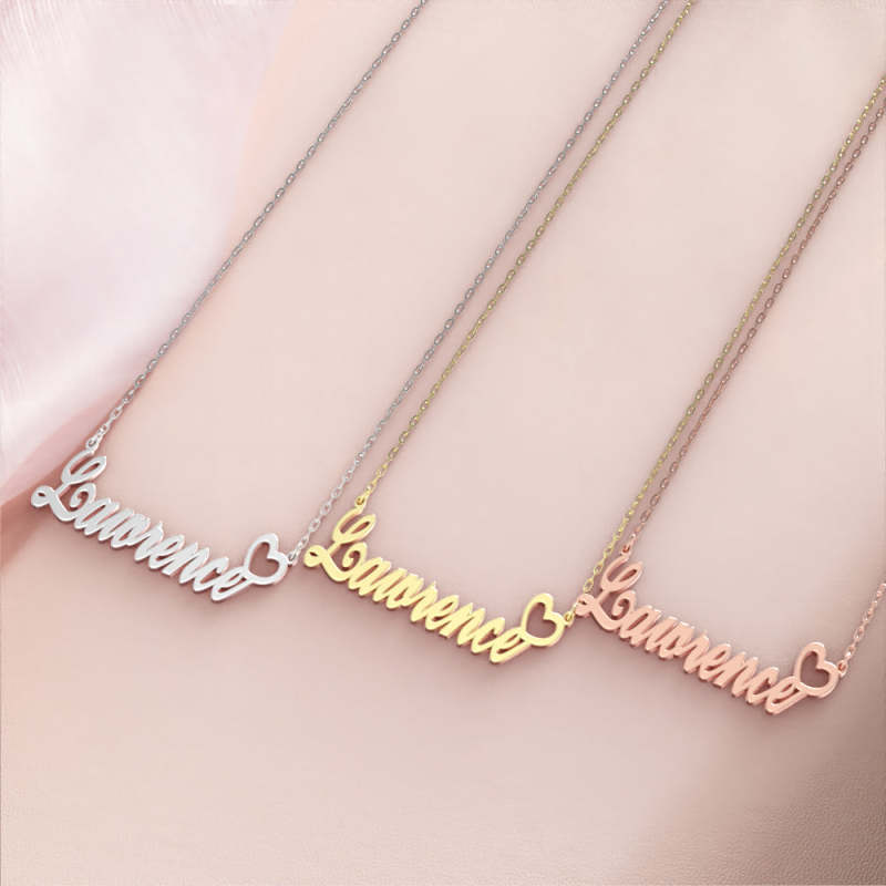 Lawrence Collar Con Nombre Plata Chapado en Oro 14K Collar Personalizado Con Corazón, Regalos Personalizados Para Ella