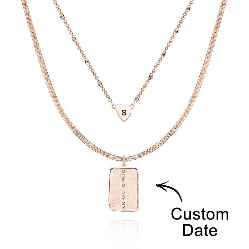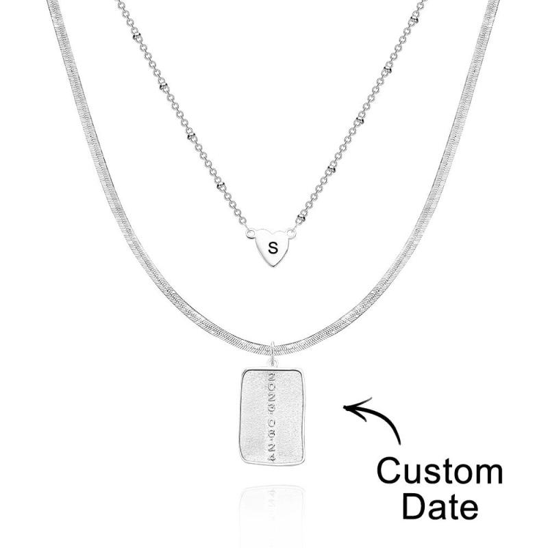 Collar Con Letras Personalizadas En Capas, Collar Con Fecha Personalizado, Regalos De Aniversario Para Mujeres