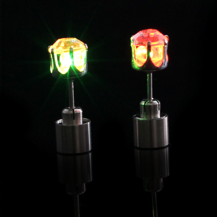 Este pendiente tiene un buen efecto de luz y emite un brillo deslumbrante en la oscuridad. Cuentas muy luminosas, varios colores claros, formas modernas, adecuadas para todo tipo de ropa de fiesta. Cuando se inserta el pendiente en el extremo del tapón para los oídos, se iluminará y cuando se retira un poco, la luz se apagará.