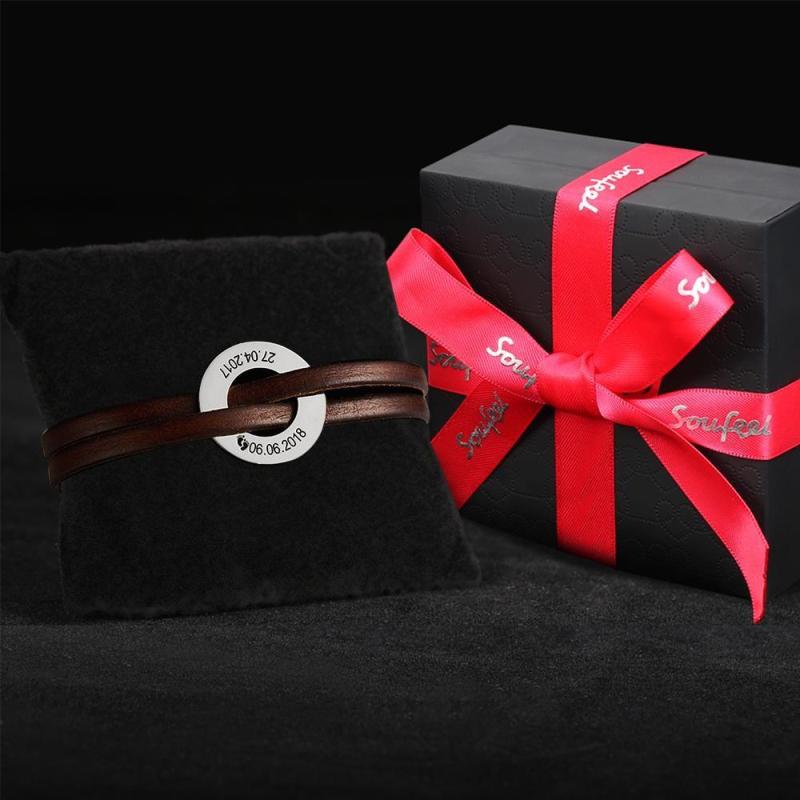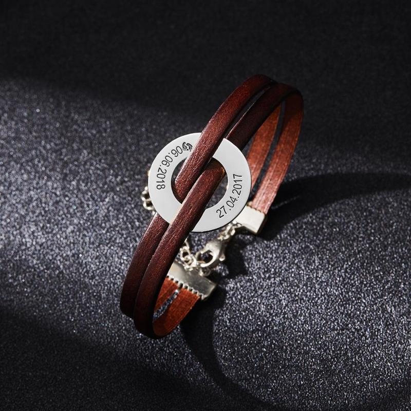 Lether Pulsera Grabada Pulsera Para Hombre Pulsera Con Nombre Regalos Conmemorativos