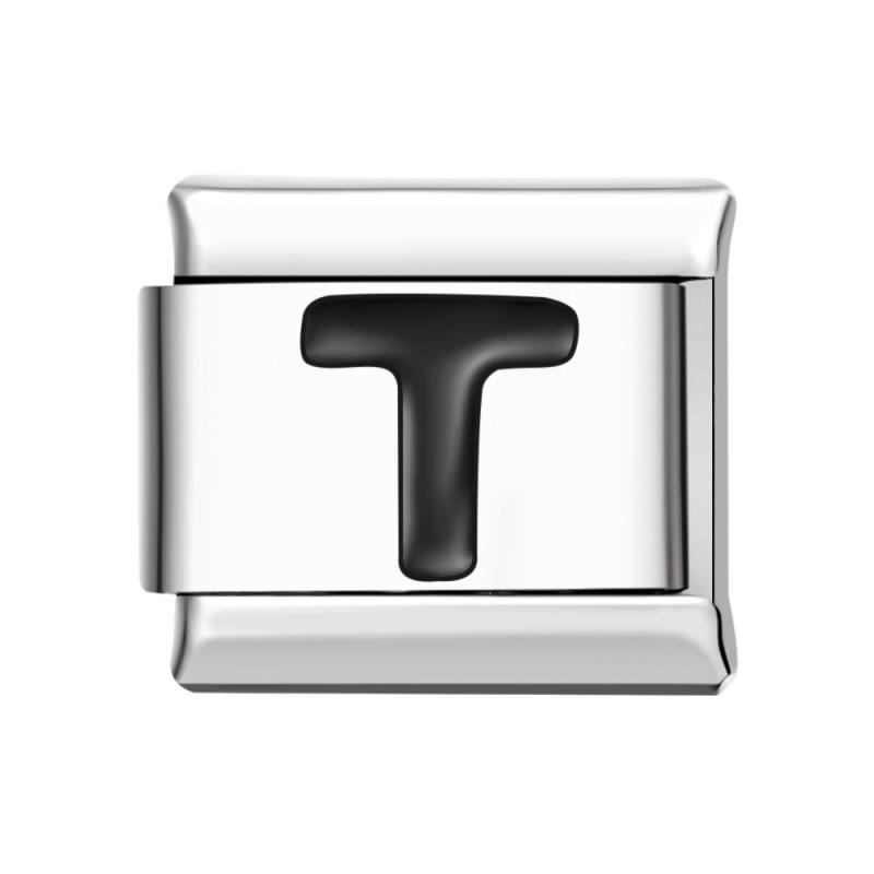 Charm Italiano Letra A-negro Para Pulseras Charm Italianas Enlace Componible