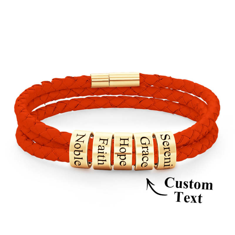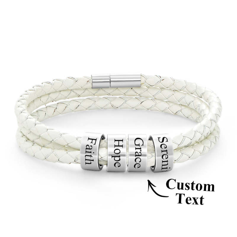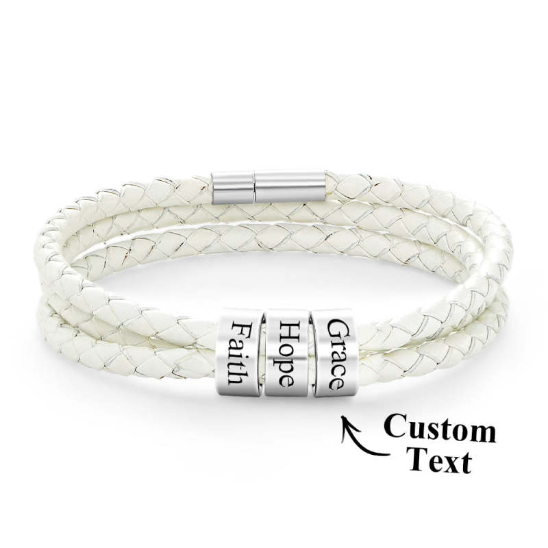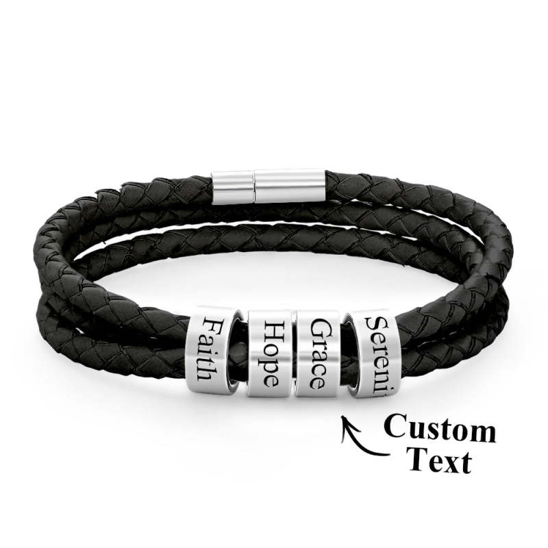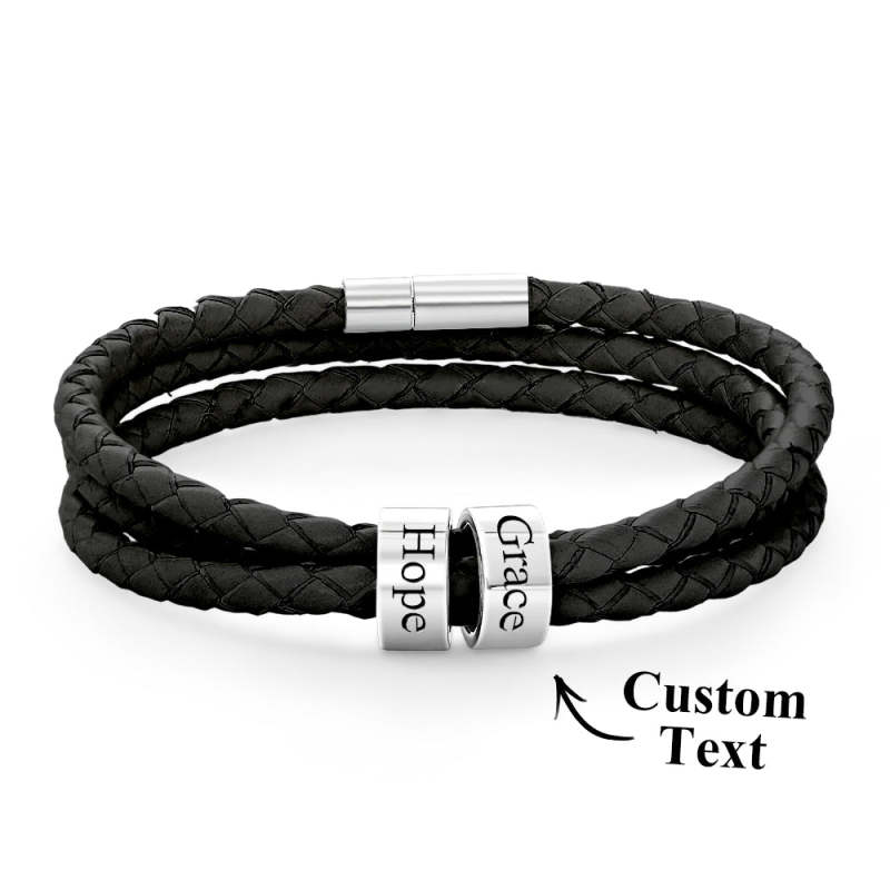 Pulsera Hombre De Cuero Trenzado Con Pequeñas Cuentas Personalizadas