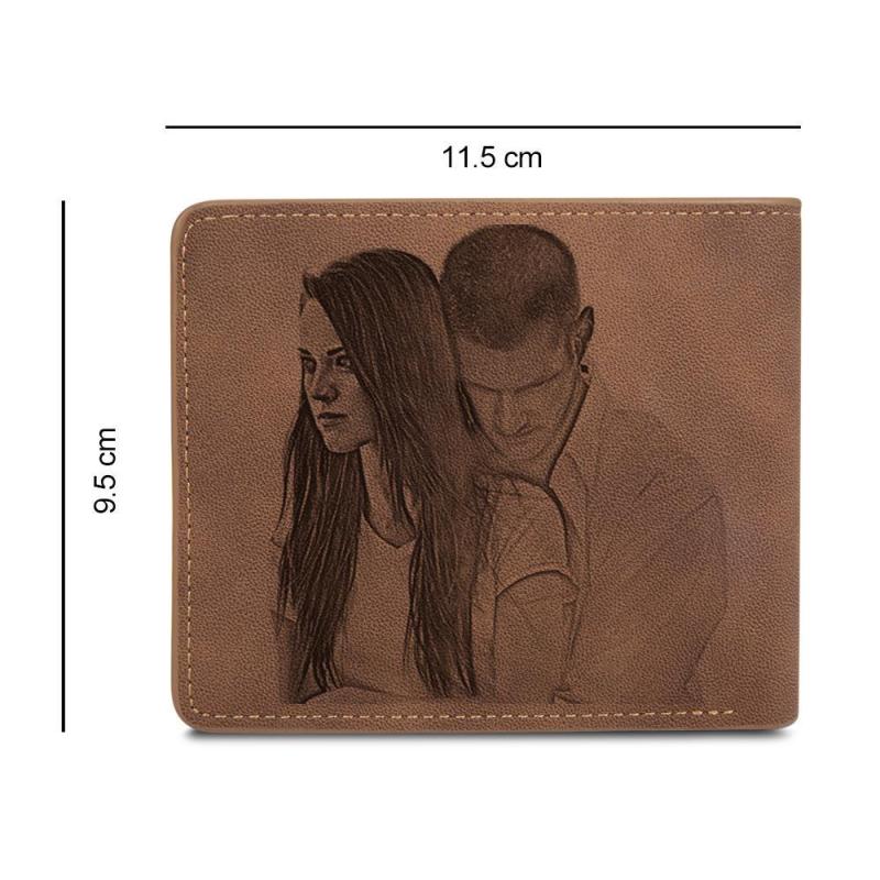Personalizada Foto Grabada Doble Cartera con Dos Fotos para Hombres- Cuero Marrón