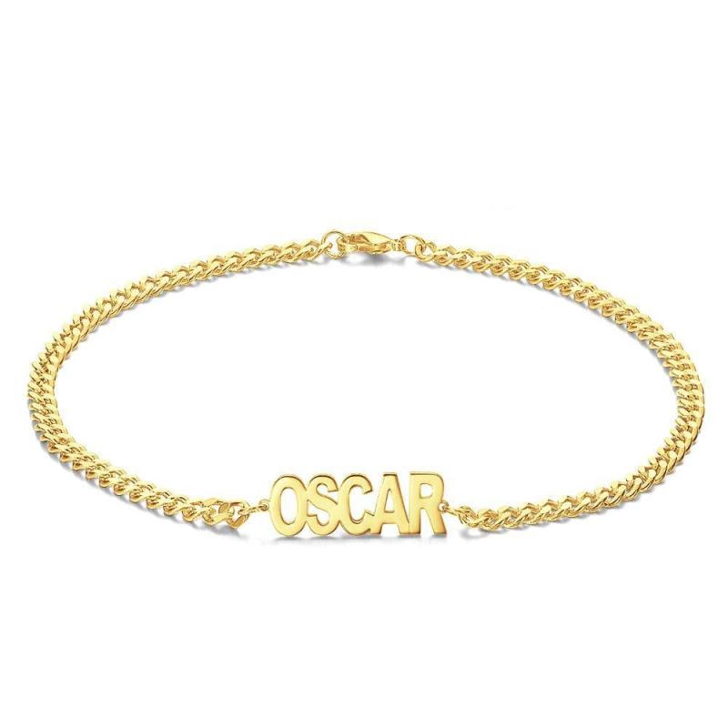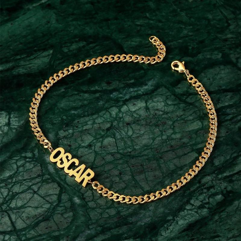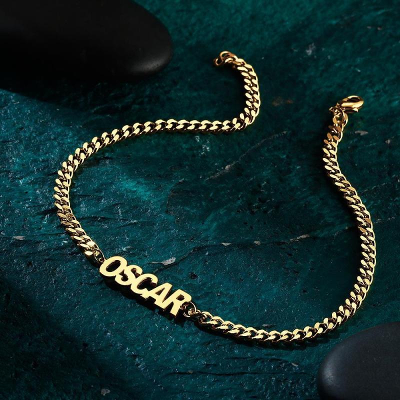 Pulsera para Hombre Pulsera Personalizada Grabada Tarjeta Doblada Regalo Novio - Chapado en Oro 14K