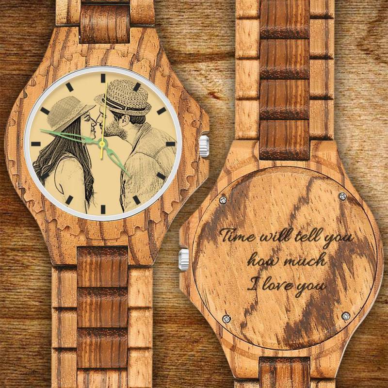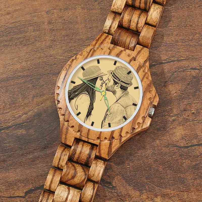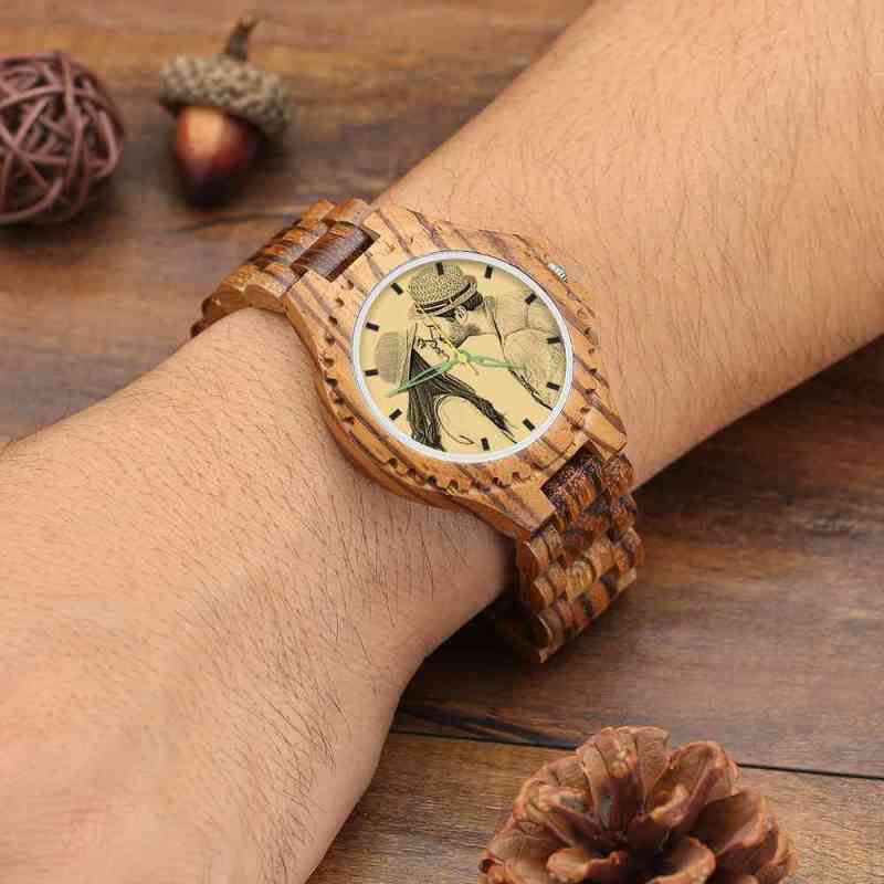 Hombre Reloj de Foto Grabable de Madera con Correa de Madera 45mm