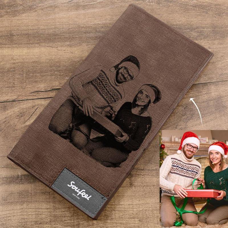 Grabable Hombre Cartera Plegable de Estilo Largo de Foto Grabable - Cuero Marrón