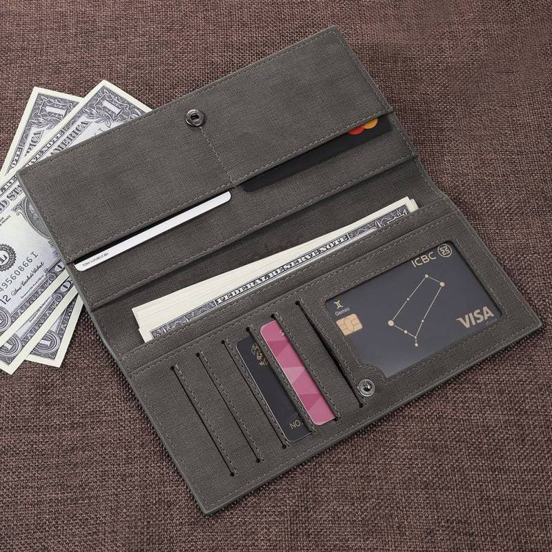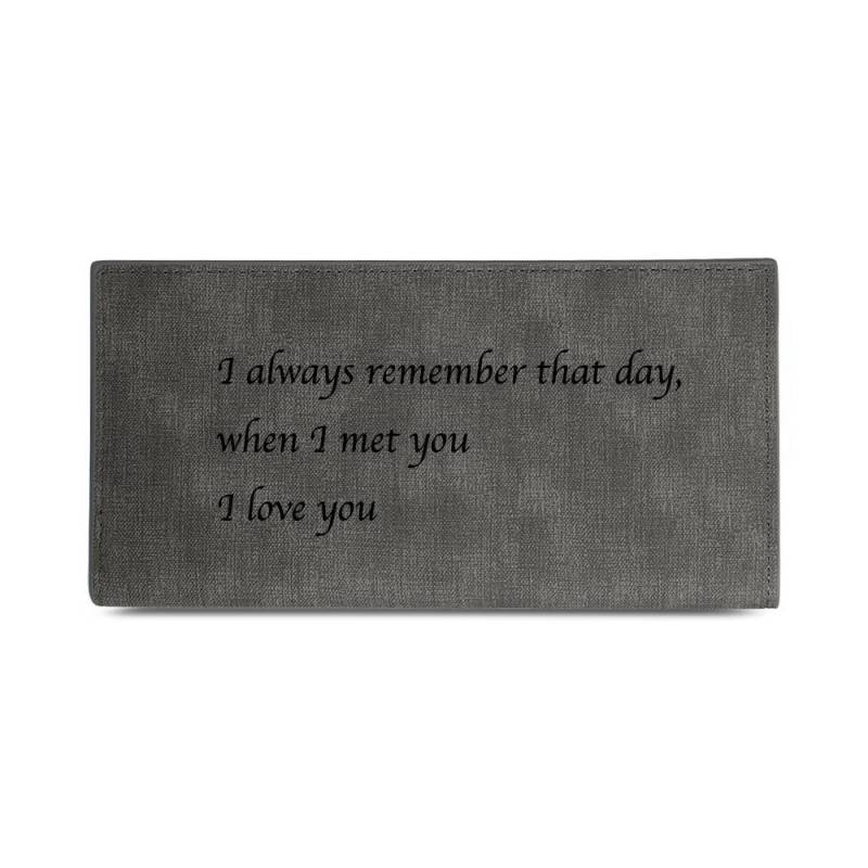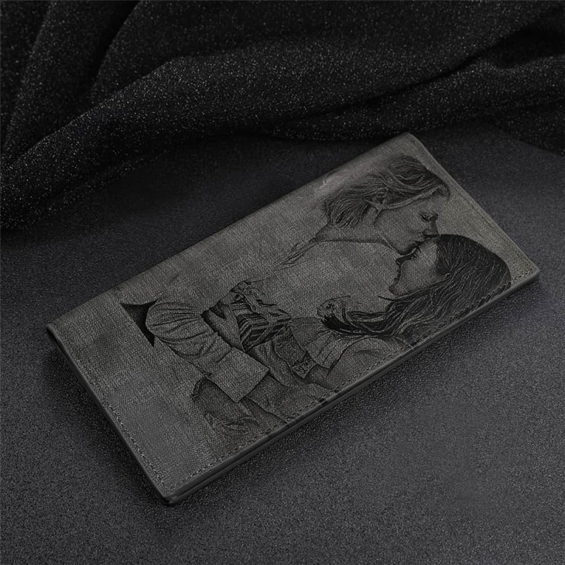 Grabable Hombre Cartera Plegable de Estilo Largo de Foto Grabable - Cuero Gris