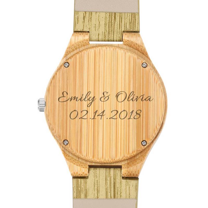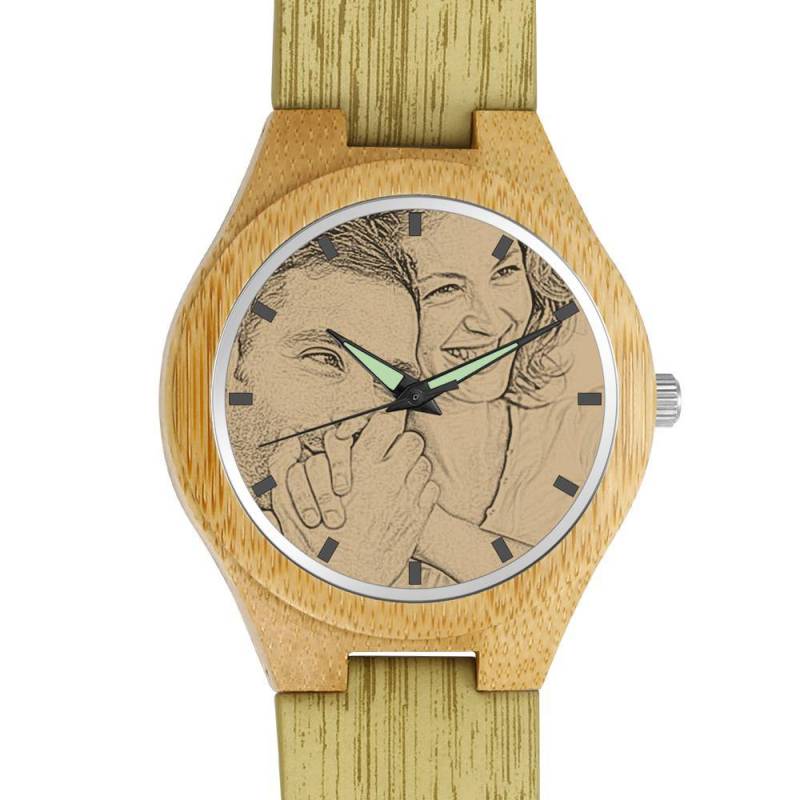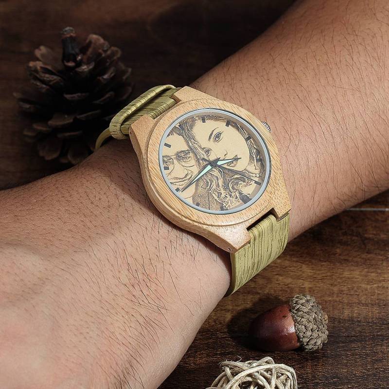 Hombre Madera Reloj Grabable de Foto Correa de Cuero de Color Madera 45mm