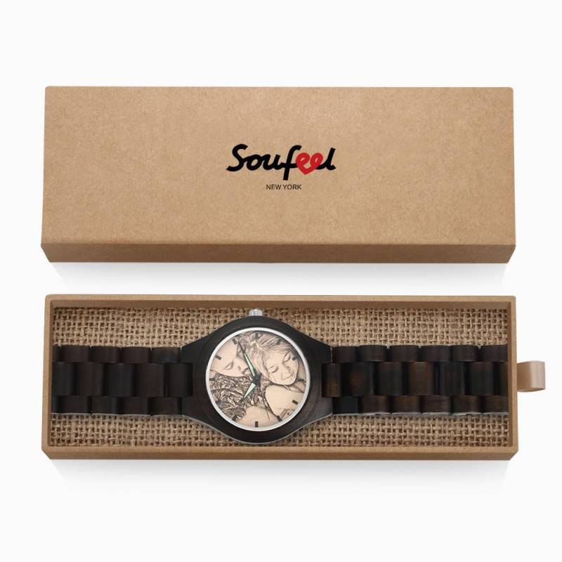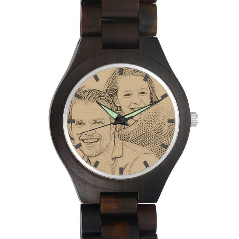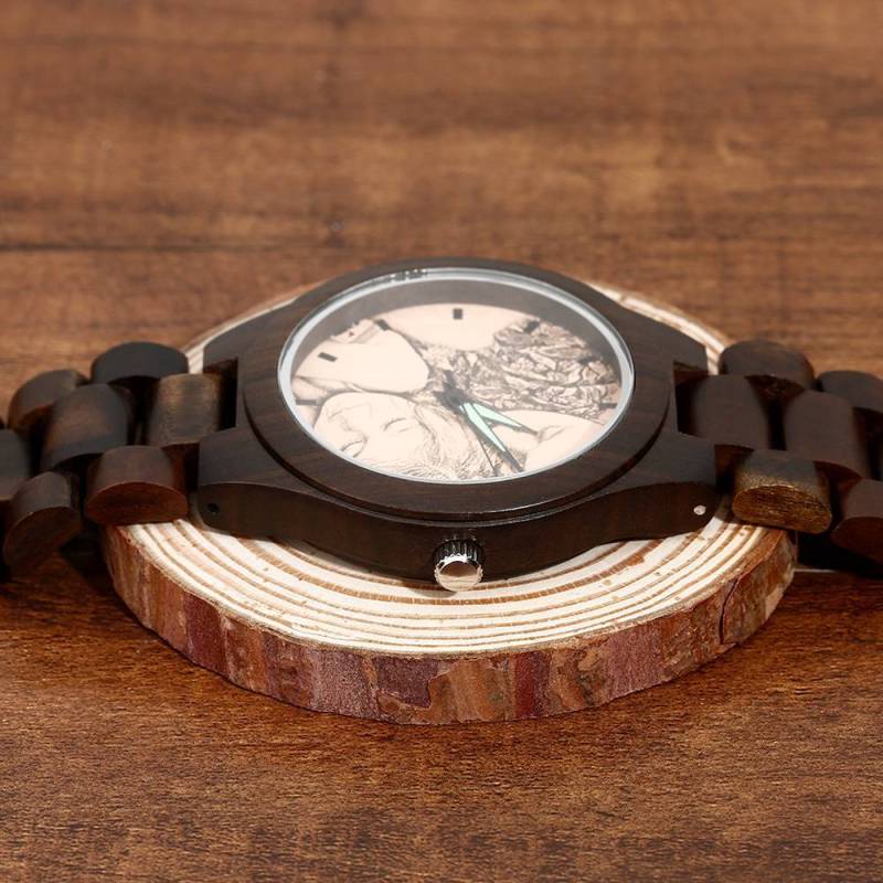 Hombre Madera Reloj Grabable de Foto Correa de Madera 45mm