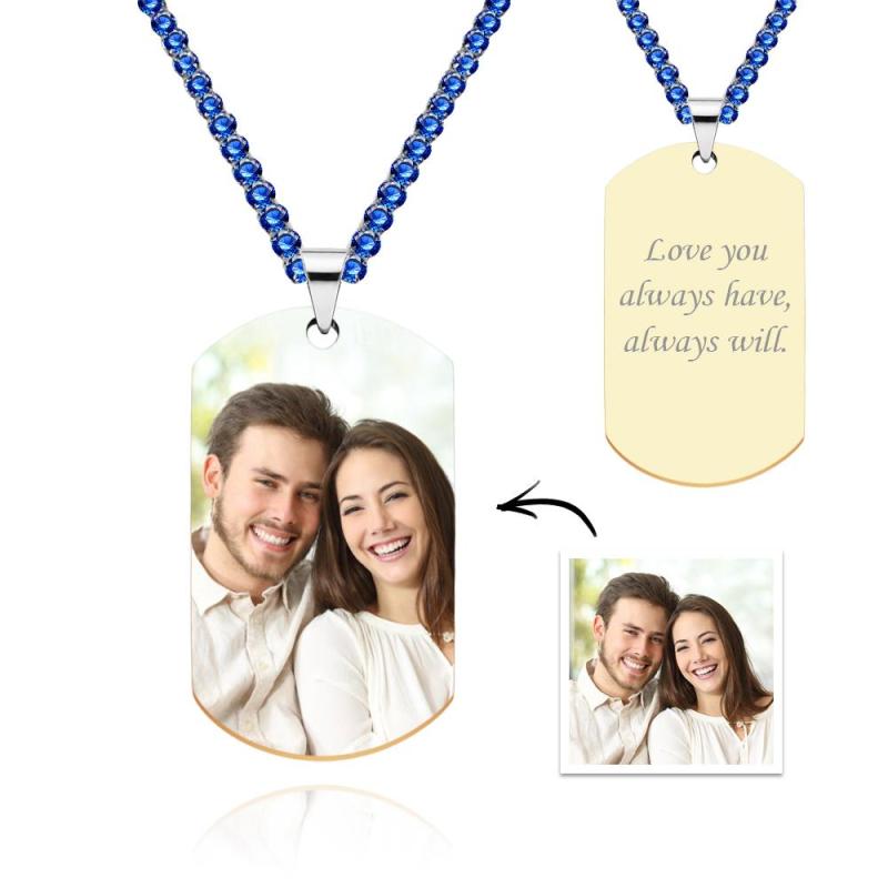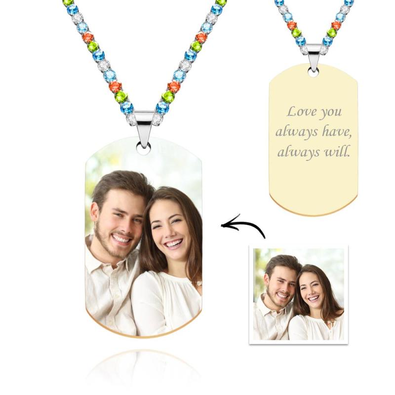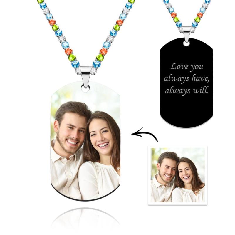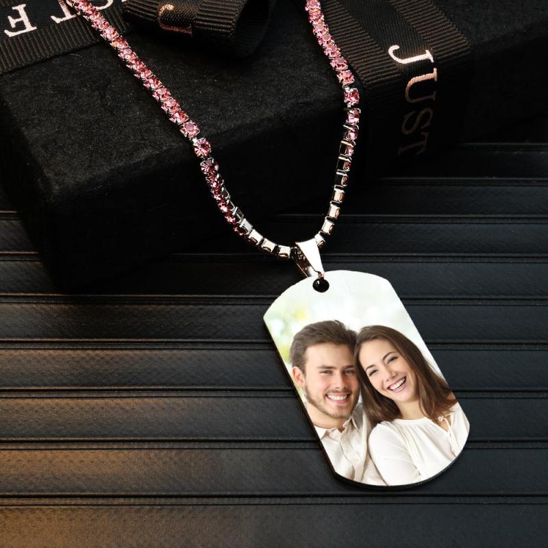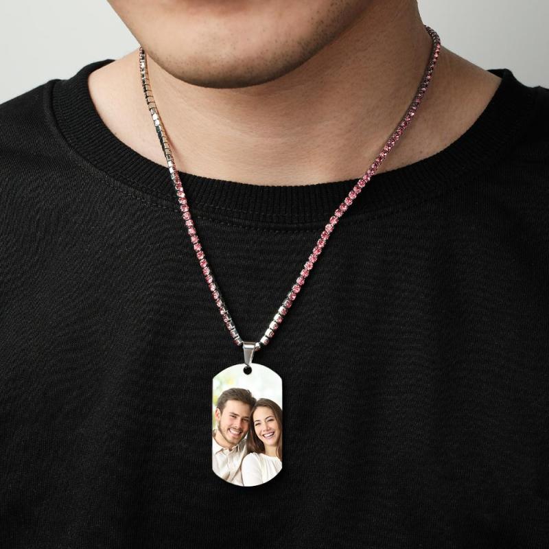 Collar Con Etiqueta Fotográfica Para Hombre Con Cadena De Tenis Grabada Regalos Para Él