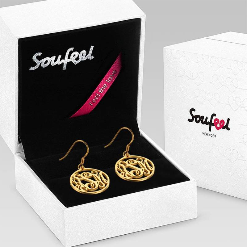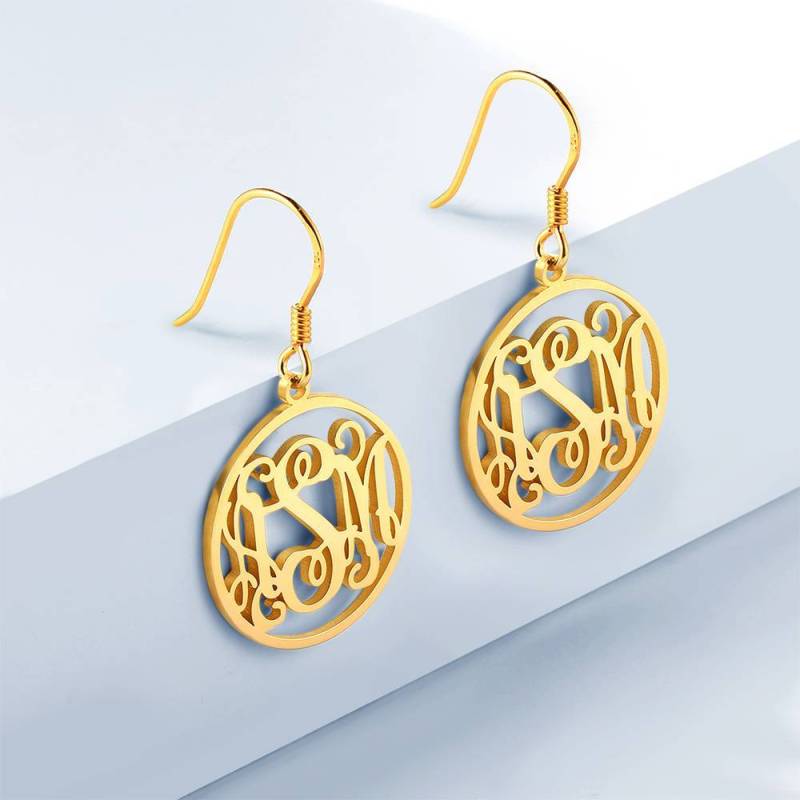 Monograma Pendientes, Pendientes Colgante Joya Elegante Chapado En Oro De 14k - Plata