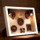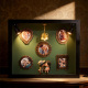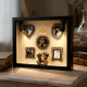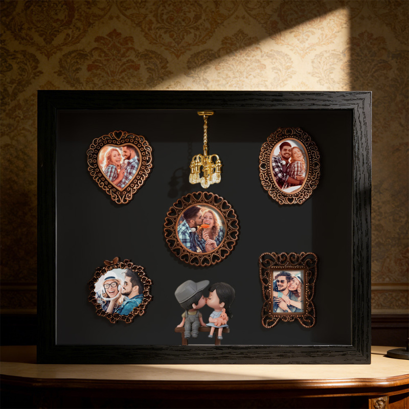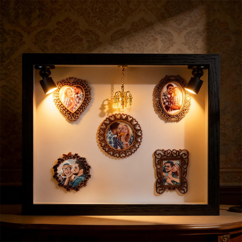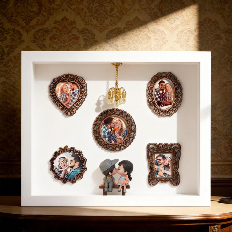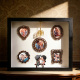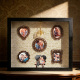 Cada caja de sombras está cuidadosamente diseñada con elementos simbólicos que reflejan la historia familiar y personal. Ya sea para regalar o para exhibir en tu hogar, esta pieza cuenta una historia poderosa: la tuya.