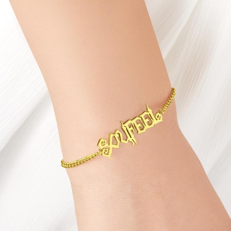 Nombre Pulsera Pulsera Personalizada Regalos Diseño especial Plata Chapada en Oro de 14 k