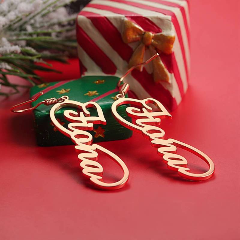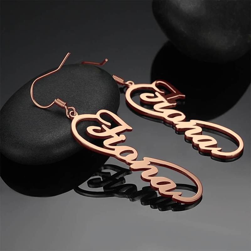 Pendientes con Nombre, Pendientes de Colgante Chapado en Oro Rosa