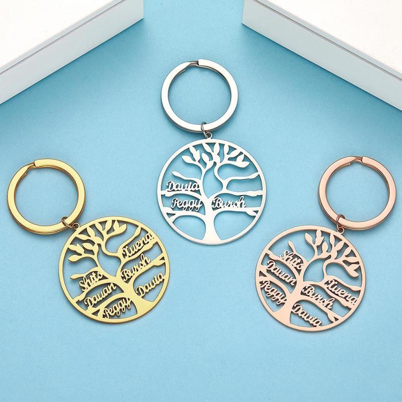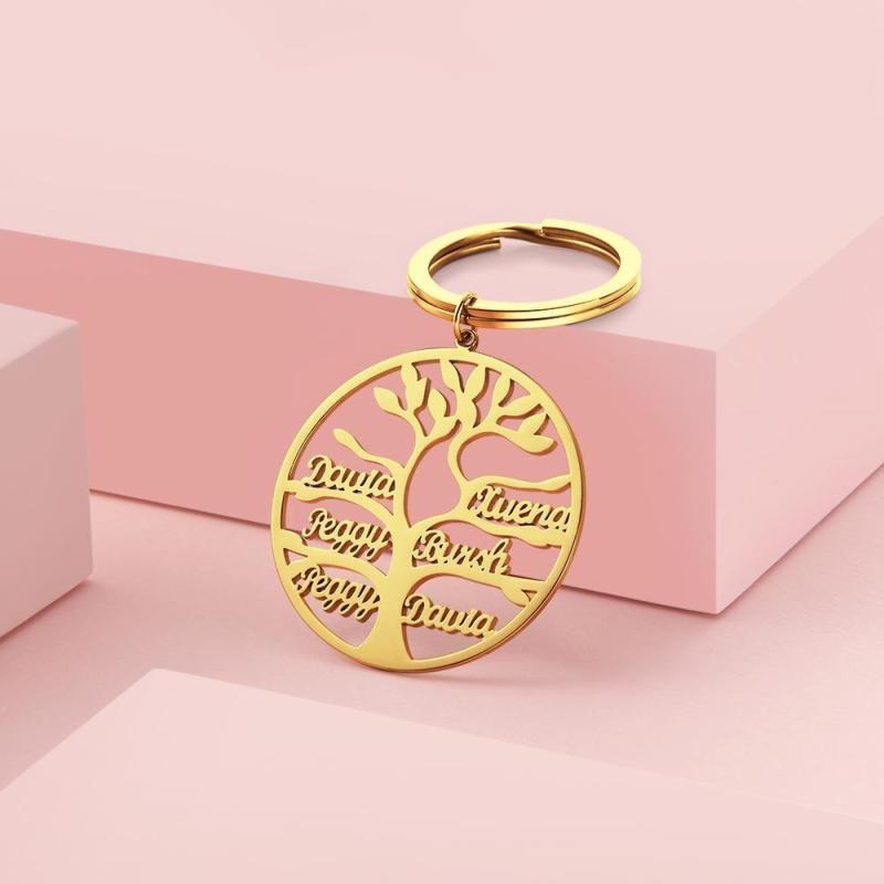 Llavero con Nombre Llavero de árbol Genealógico Regalos para Mujeres Chapado en Oro de 14k 1-9 Nombres