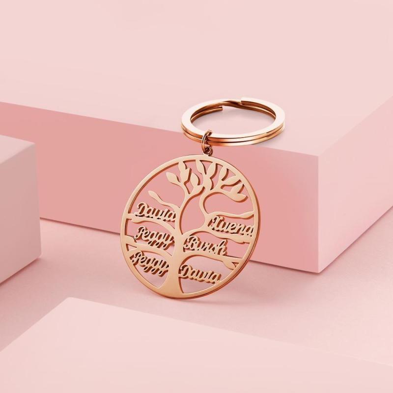 Llavero con Nombre Llavero con árbol Genealógico Regalos para Mujeres Chapado en Oro Rosa 1-9 Nombres