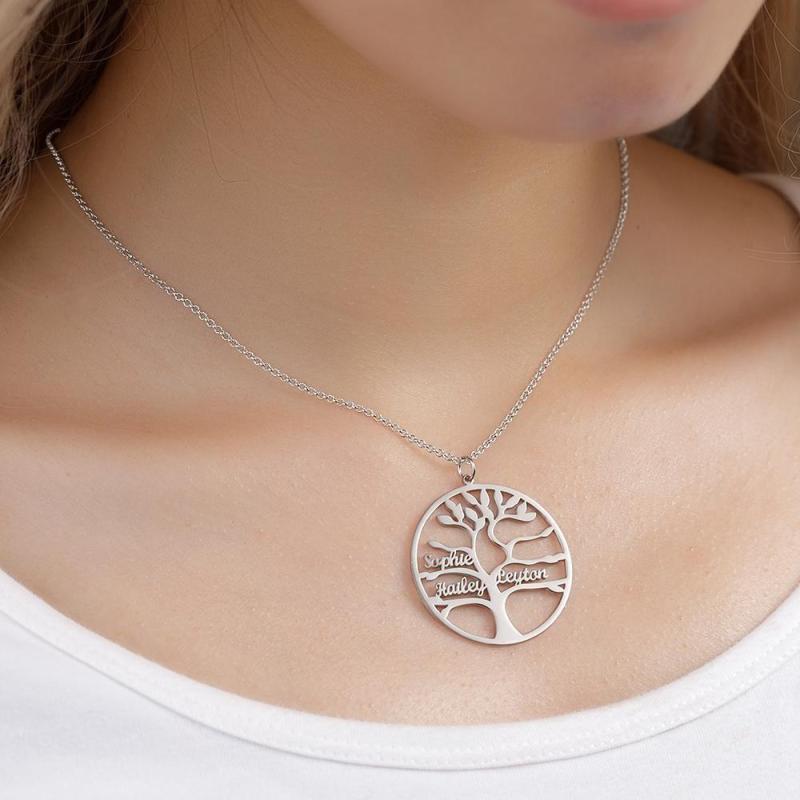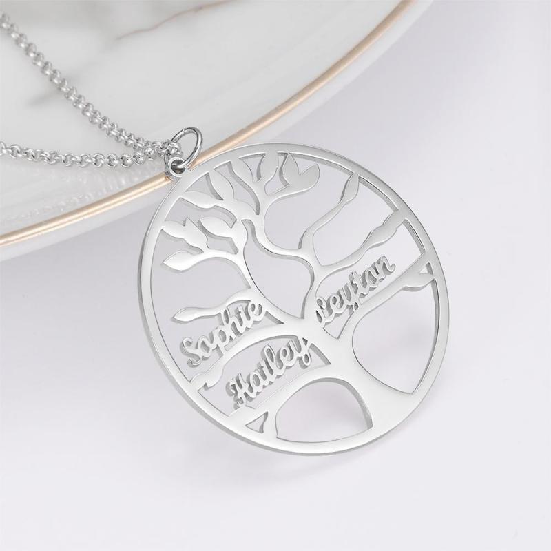 Collar con Nombre Collar de árbol Genealógico con 1-9 Nombres Regalos Conmemorativos