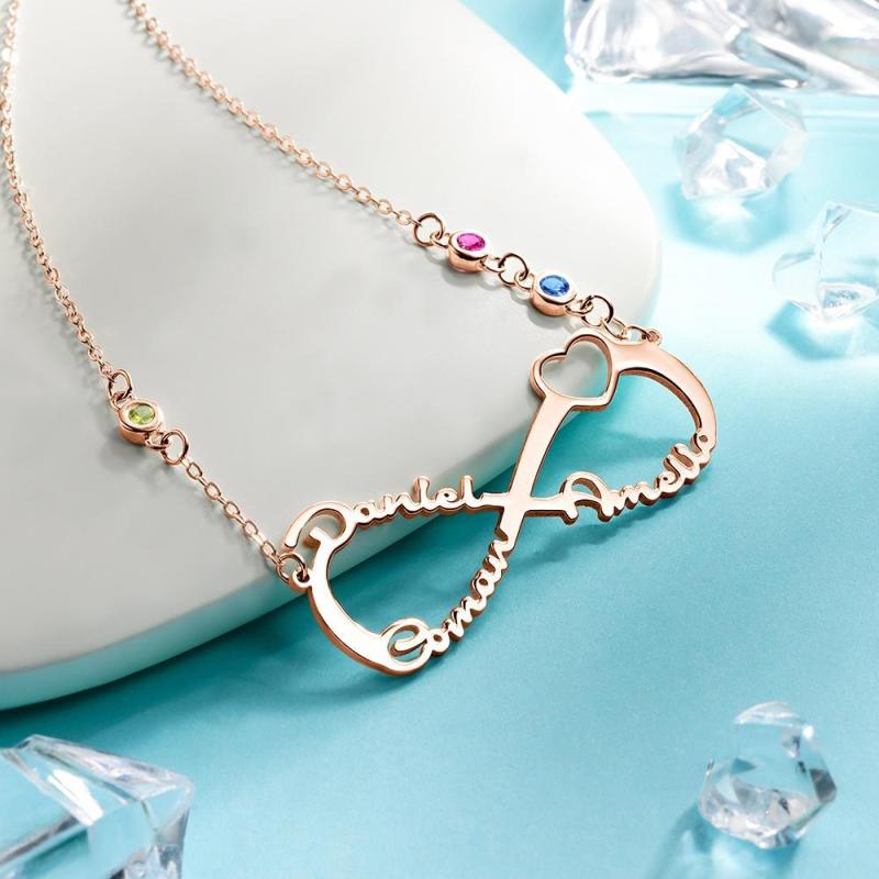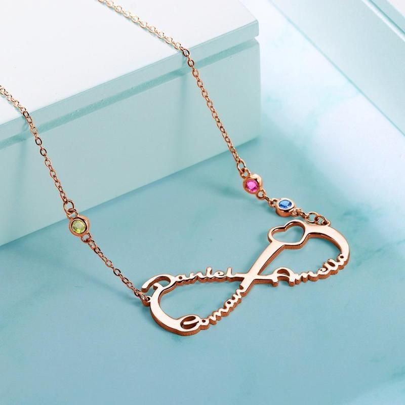 Collar con Nombre con Piedra Natal Personalizada Collar Infinito Regalos Familiares Chapado en Oro Rosa