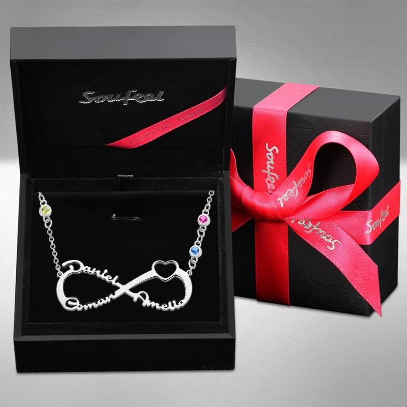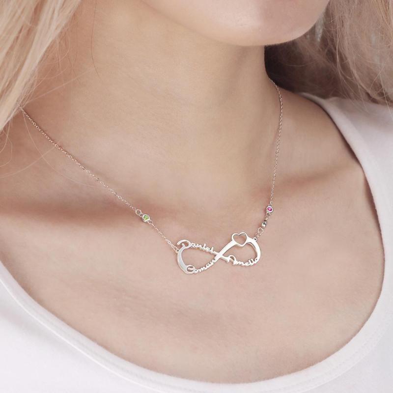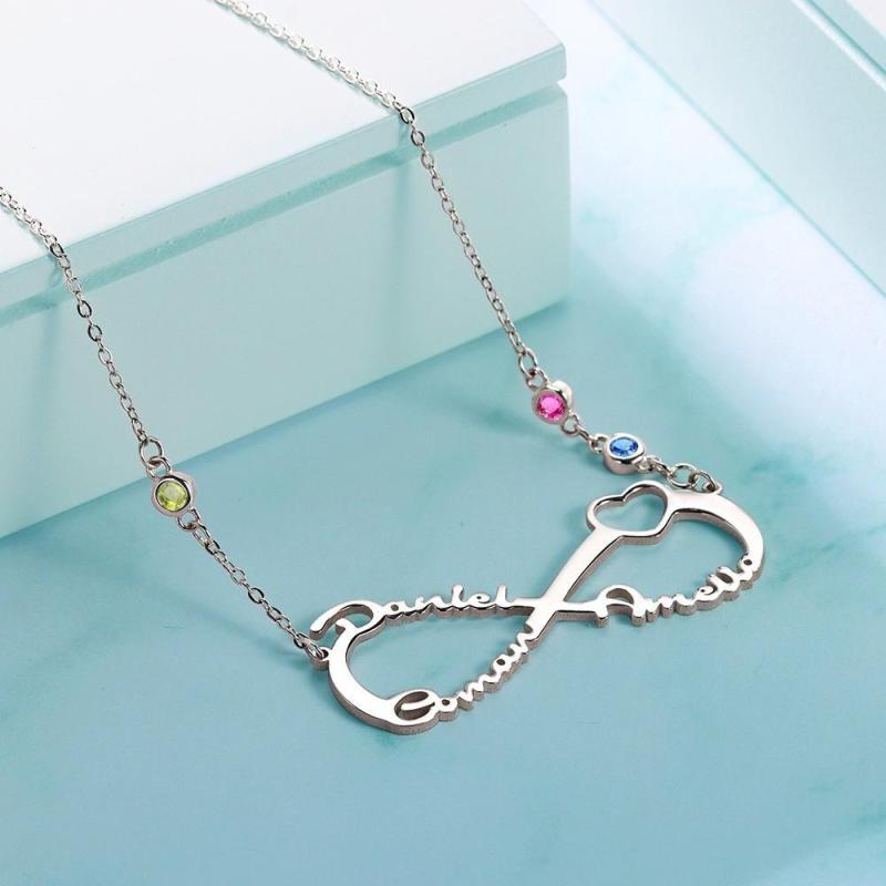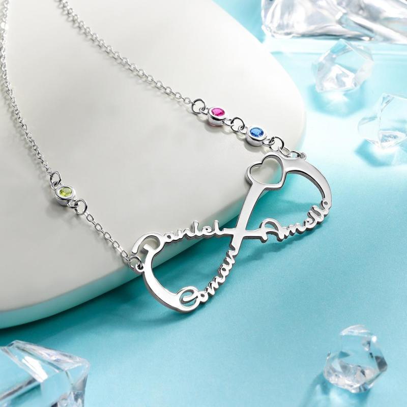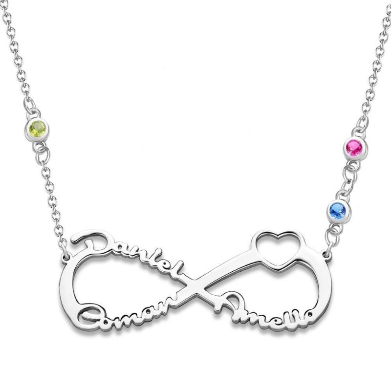 Collar con Nombre con Piedra Natal Personalizada Collar Infinito Regalos Familiares Plata