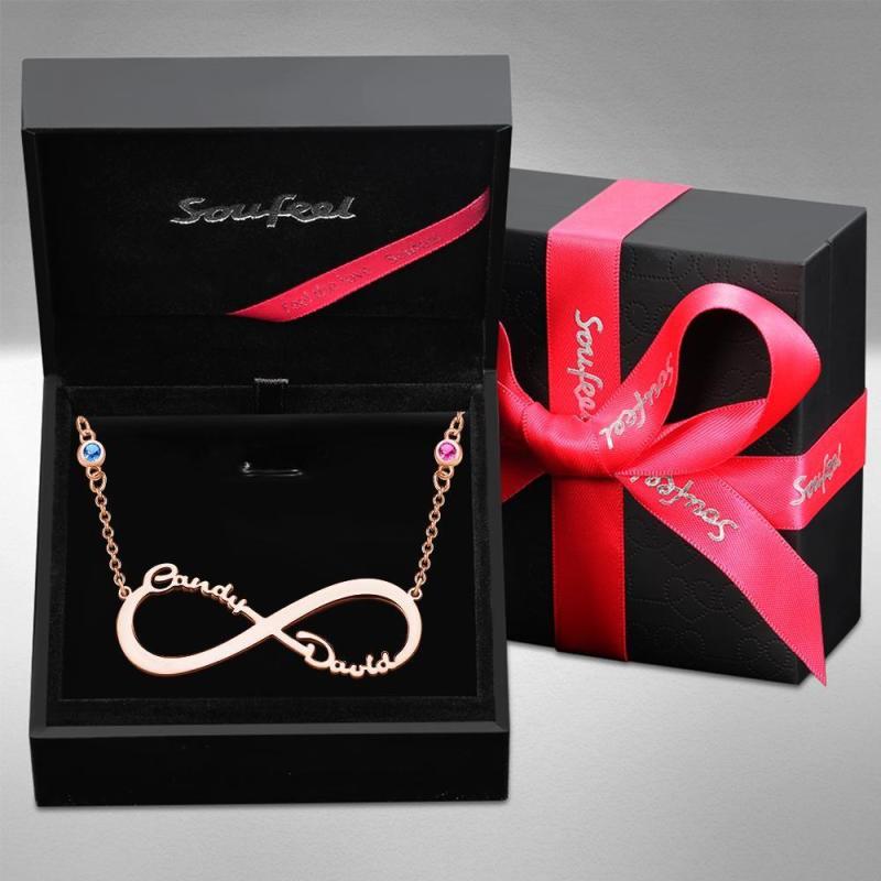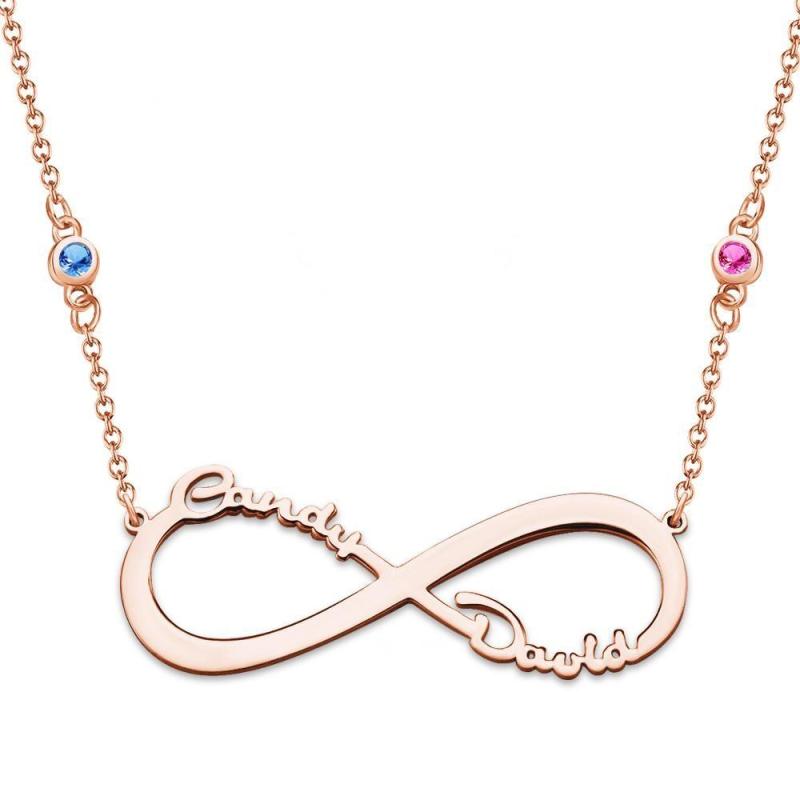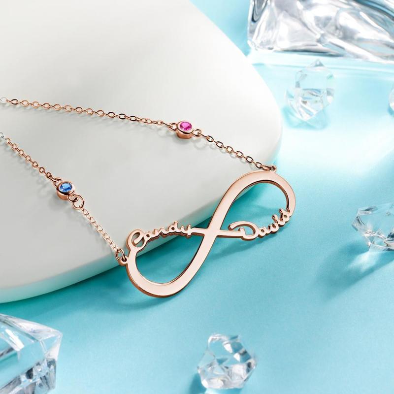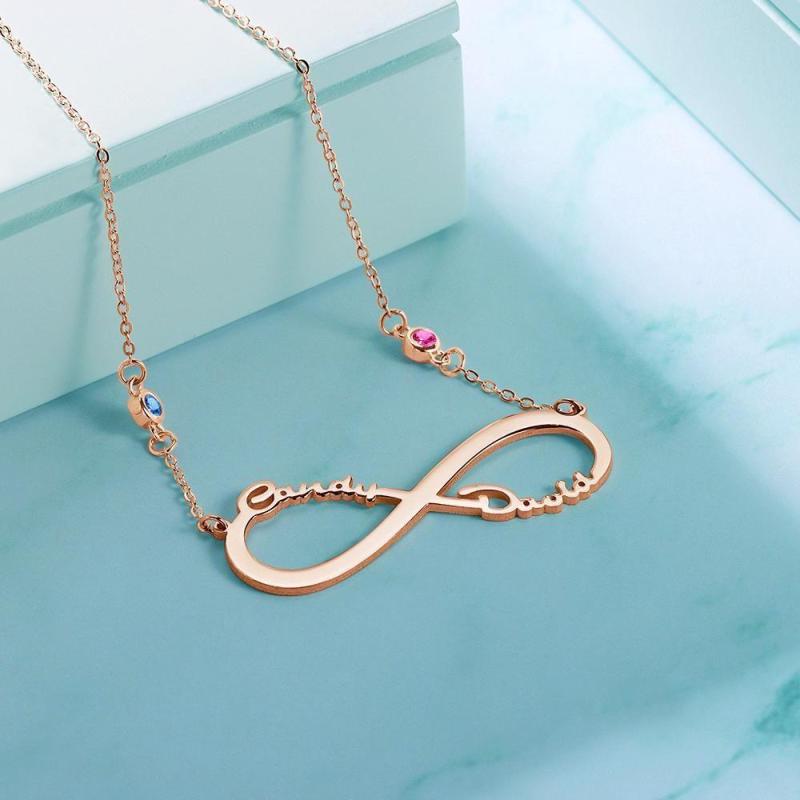 Collar con Nombre con Piedra Natal Personalizada Collar Infinito Regalos Conmemorativos Chapado En Oro Rosa