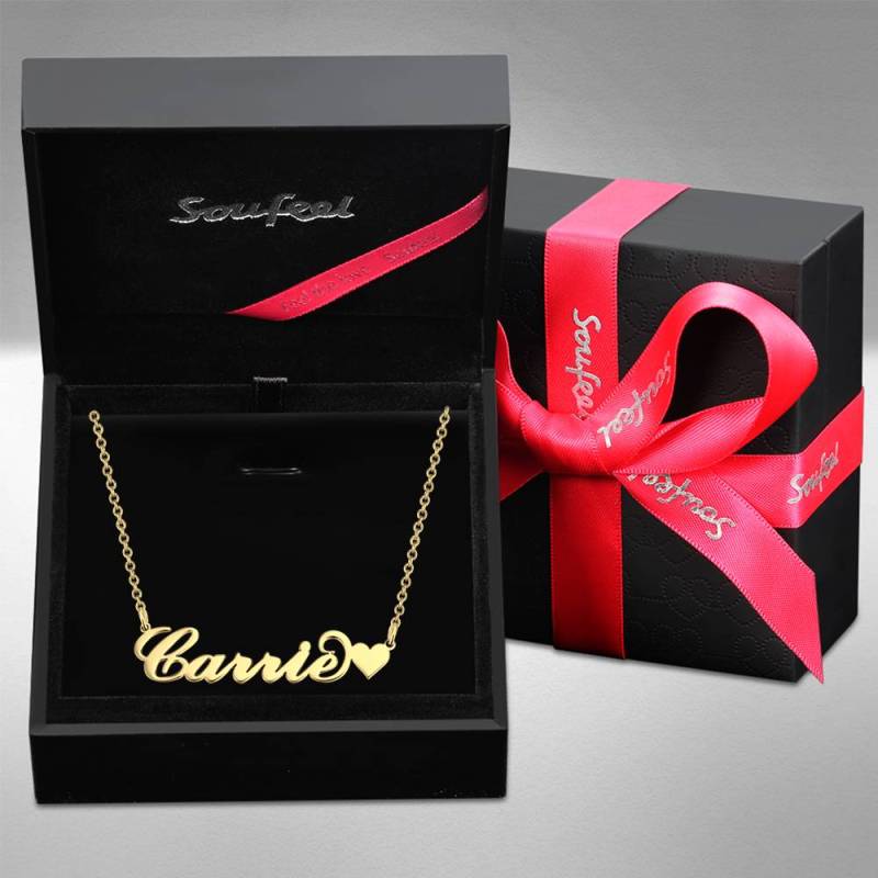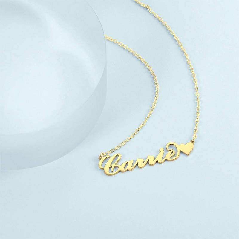 Collar Con Nombre Personalizado - Collar Con Nombre De Oro De 14 Quilates Estilo Carrie Con Corazón - Ideas De Regalo De Aniversario Para Ella
