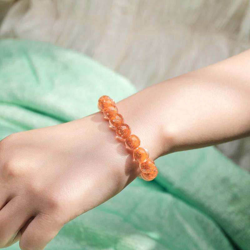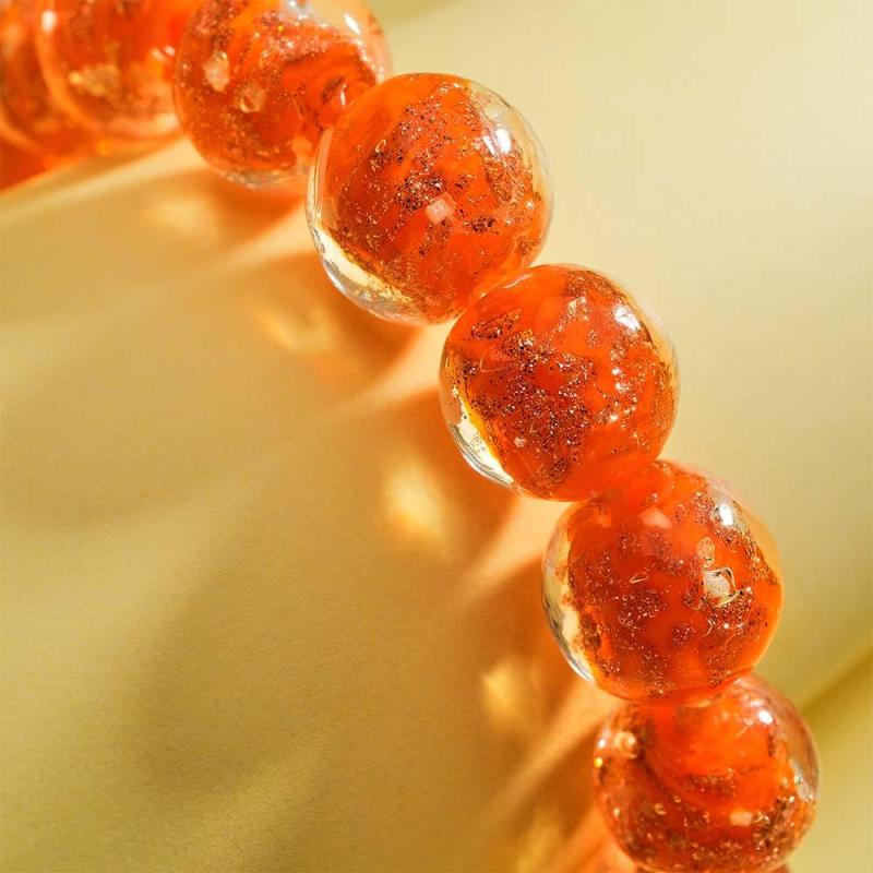 Pulsera Con Cuentas Elásticas De Cristal De Luciérnaga Naranja Que Brilla En La Pulsera Luminosa Oscura