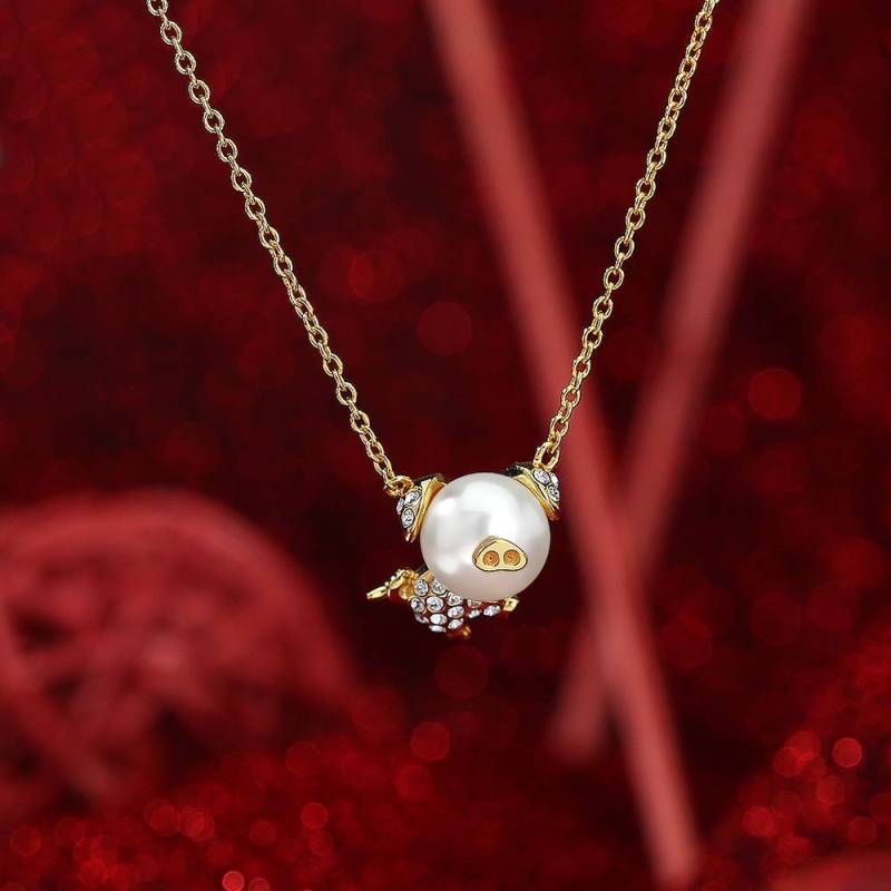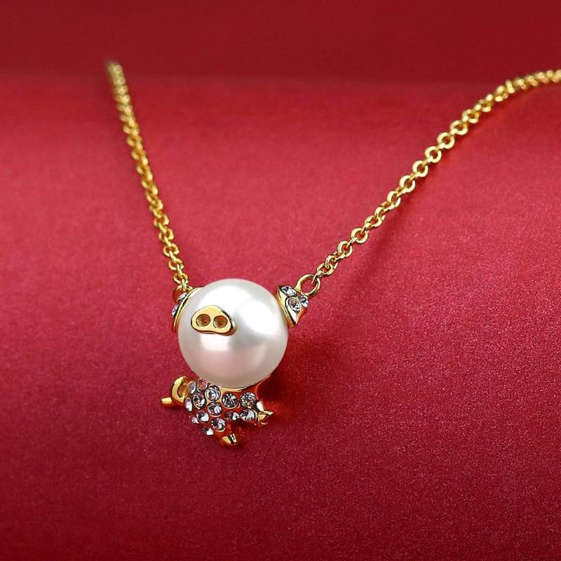 Collar De Perlas Con Colgante De Cerdo 14k Chapado En Oro Plateado