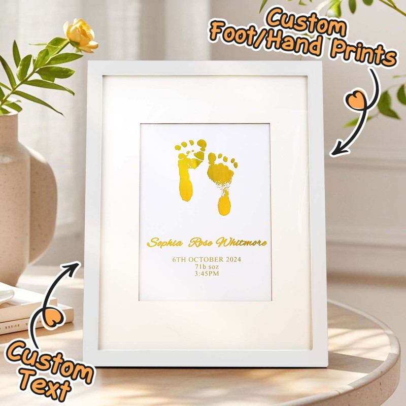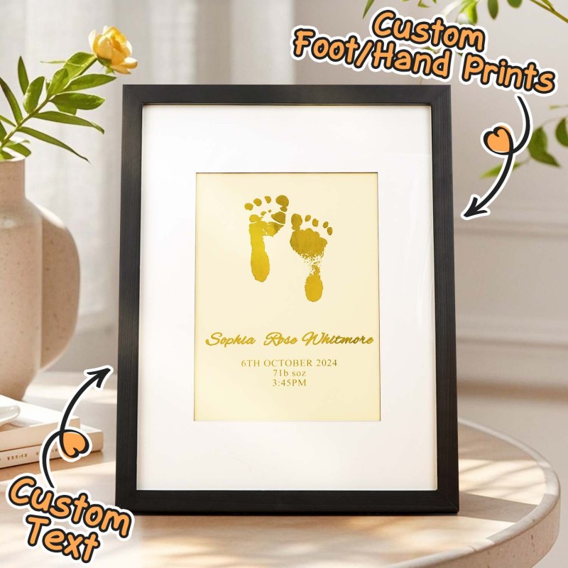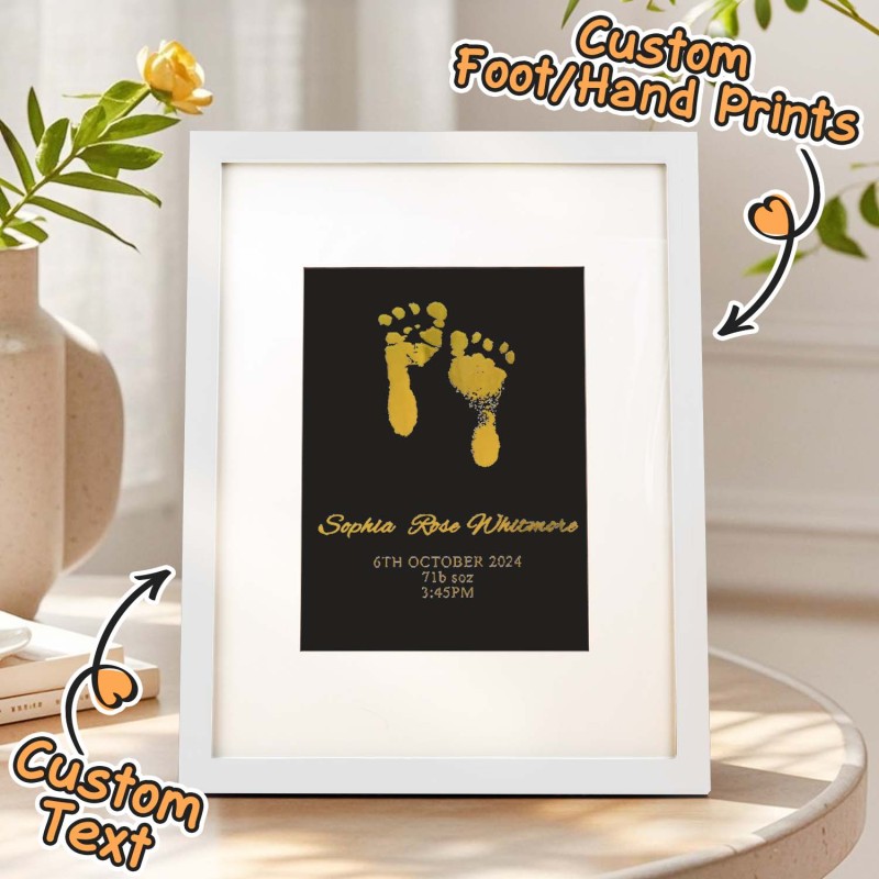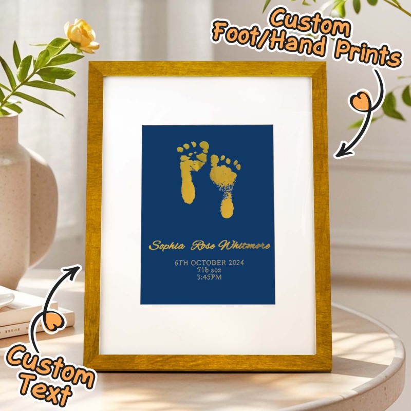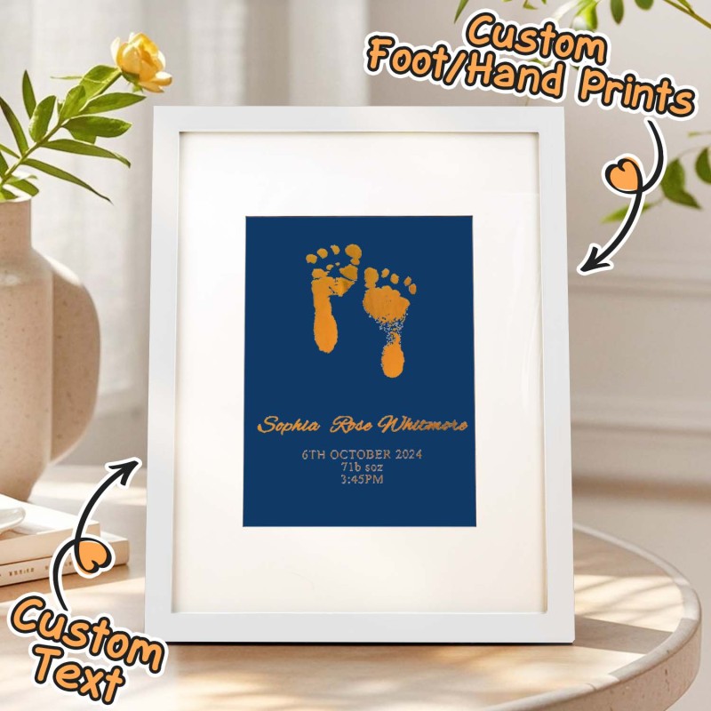 Nuestras impresiones personalizadas son un recuerdo atemporal para nuevos padres, familiares y amigos, además de un regalo significativo y considerado para futuros padres. Diseñada para preservar tus recuerdos más preciados, cada pieza está elaborada con cuidado y hecha para ser atesorada para siempre.