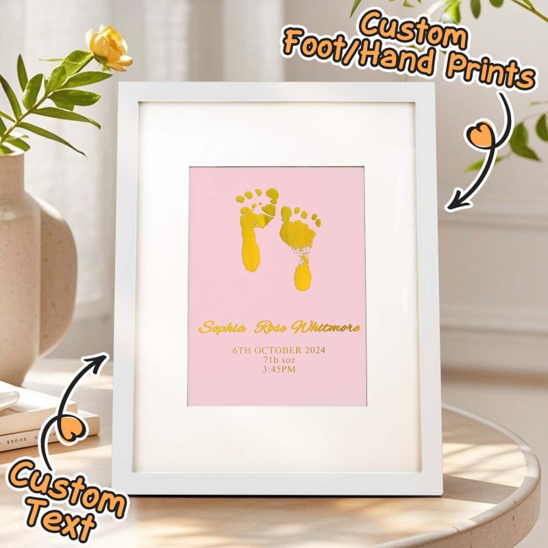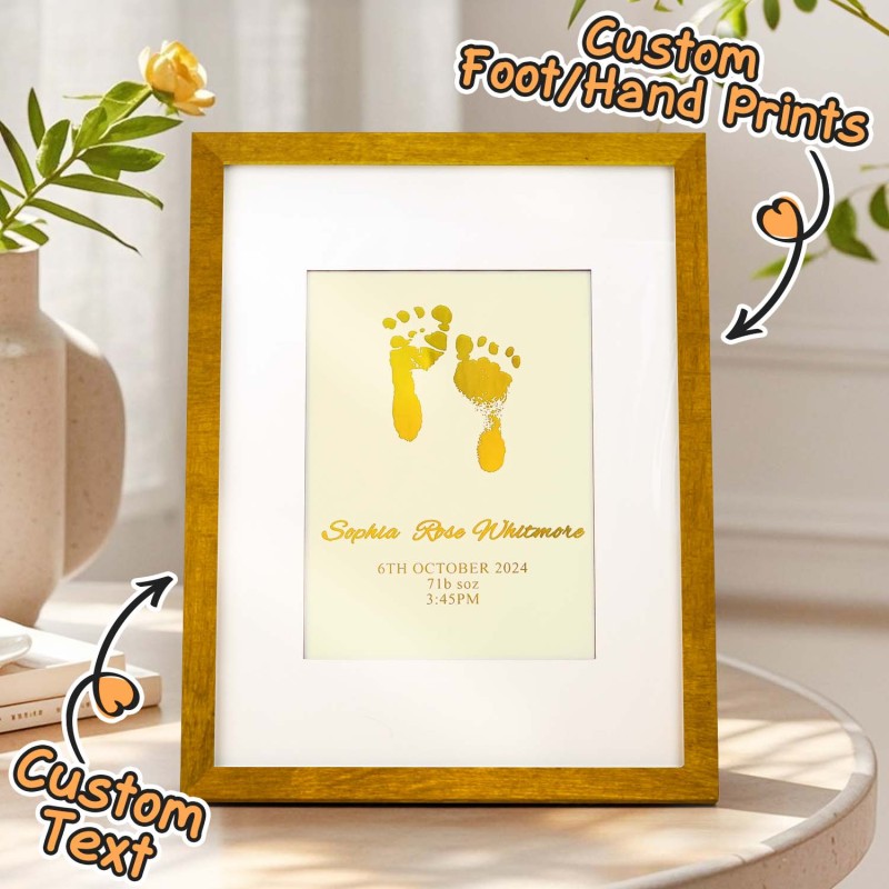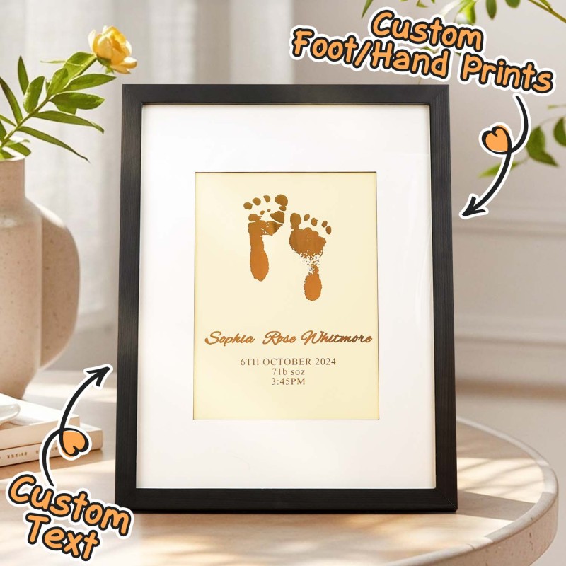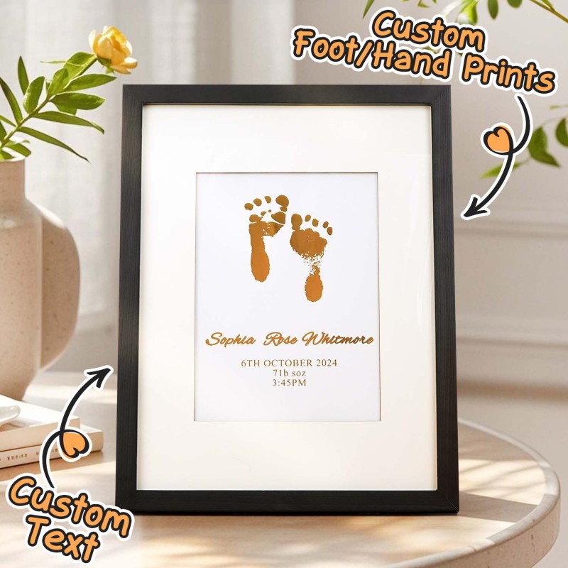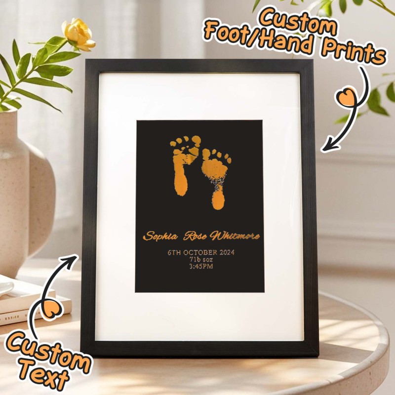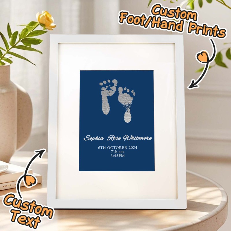 Nuestras impresiones personalizadas son un recuerdo atemporal para nuevos padres, familiares y amigos, además de un regalo significativo y considerado para futuros padres. Diseñada para preservar tus recuerdos más preciados, cada pieza está elaborada con cuidado y hecha para ser atesorada para siempre.