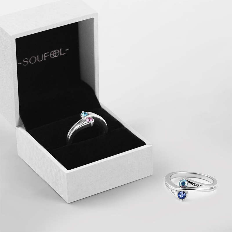 Celebra el amor para siempre con este exquisito anillo acabado a mano en plata de ley, con anillo de promesa grabable y cristales intercambiables. SOUFEEL-El Sentimiento del Amor.