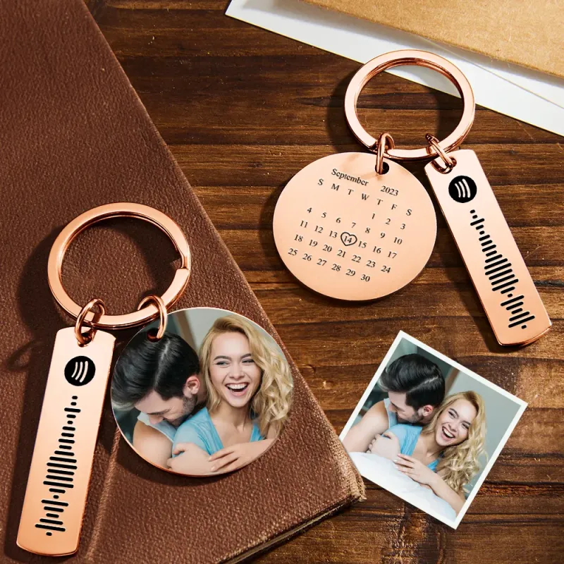 Llavero Con Calendario Personalizado, Día Especial, Foto Importante, Forma De Corazón, Círculo Cuadrado, Código Musical, Llavero De Metal, Regalo De Aniversario