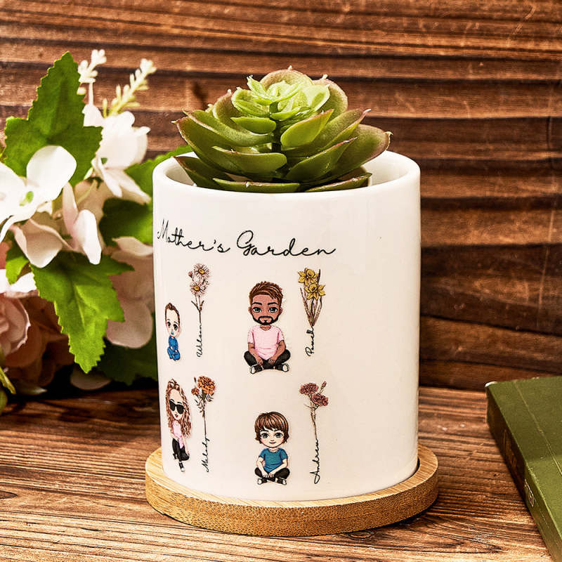 Esta maceta de cerámica personalizada es un regalo único y considerado para cualquier abuela o madre. Con un diseño de flor de nacimiento y una figura de dibujos animados personalizables, agrega un toque personal a cualquier hogar u oficina. Fabricada con cerámica de alta calidad, es un regalo duradero y significativo para los seres queridos.