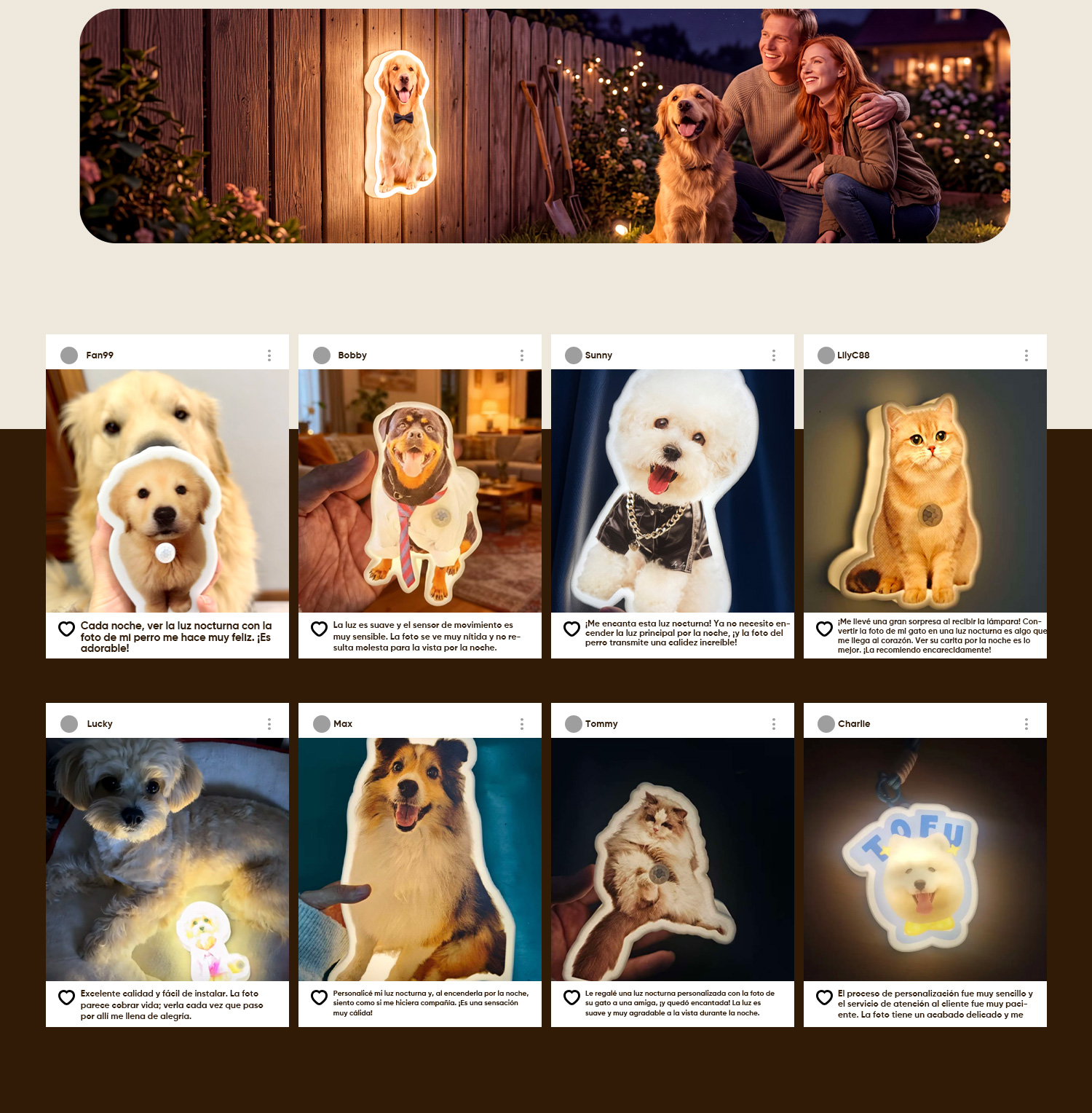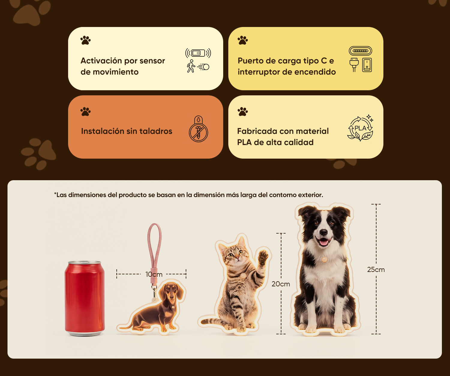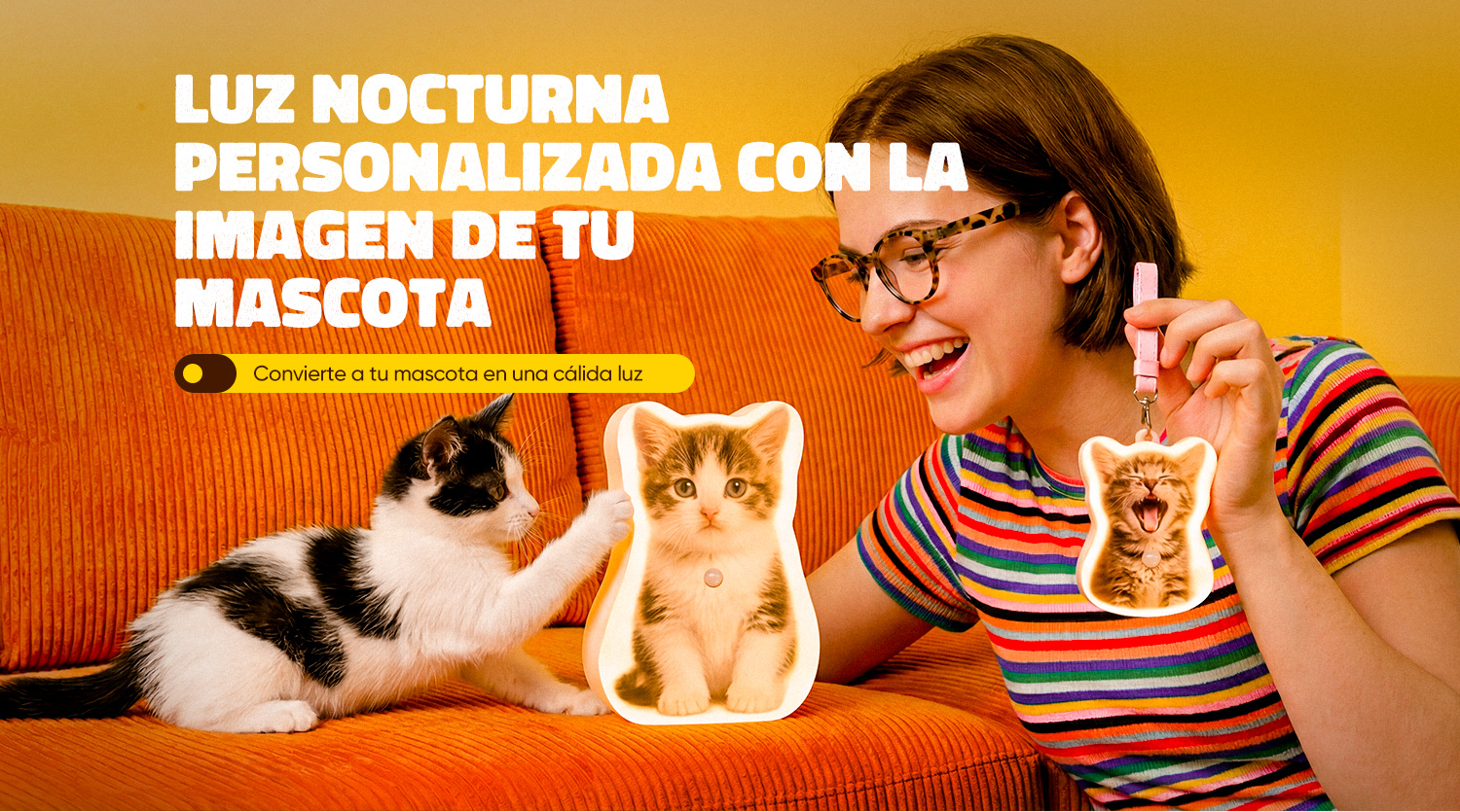 Esta luz nocturna de pared con sensor de movimiento se personaliza a partir de la foto de tu mascota y está diseñada para aportar calidez, confort y practicidad a tu día a día.