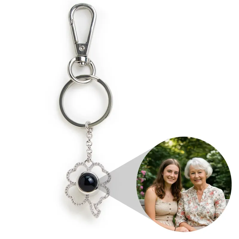 Llavero Personalizado Con Foto De Trébol Y Gema De Proyección, Regalo De Navidad Para Mejores Amigas.