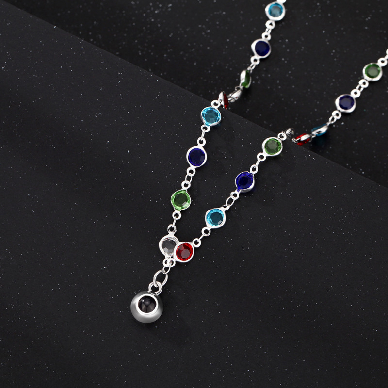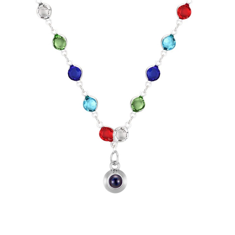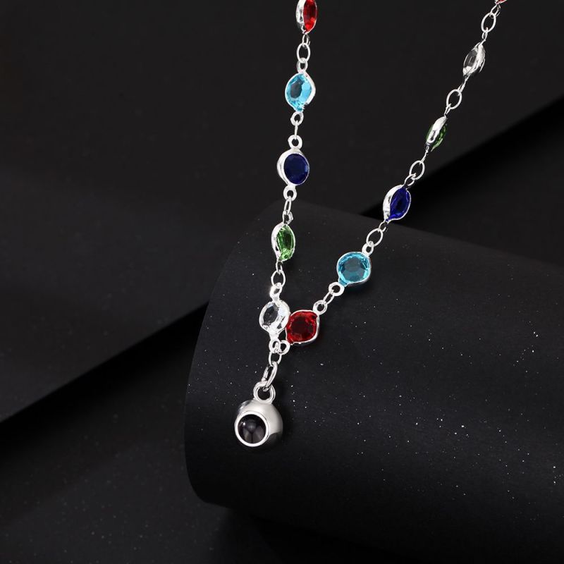 Collar Personalizado Con Foto De Cristal De Colores Y Gemas De Proyección, Regalo De Aniversario Para Ella