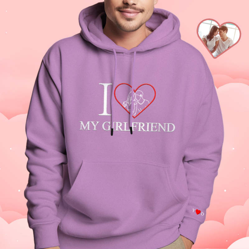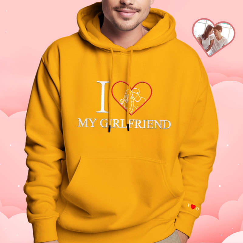 Personalizado Bordado Foto Contorno Sudadera Con Capucha Corazón Rojo Imagen Personalizada Retrato Sudadera Regalo De San Valentín