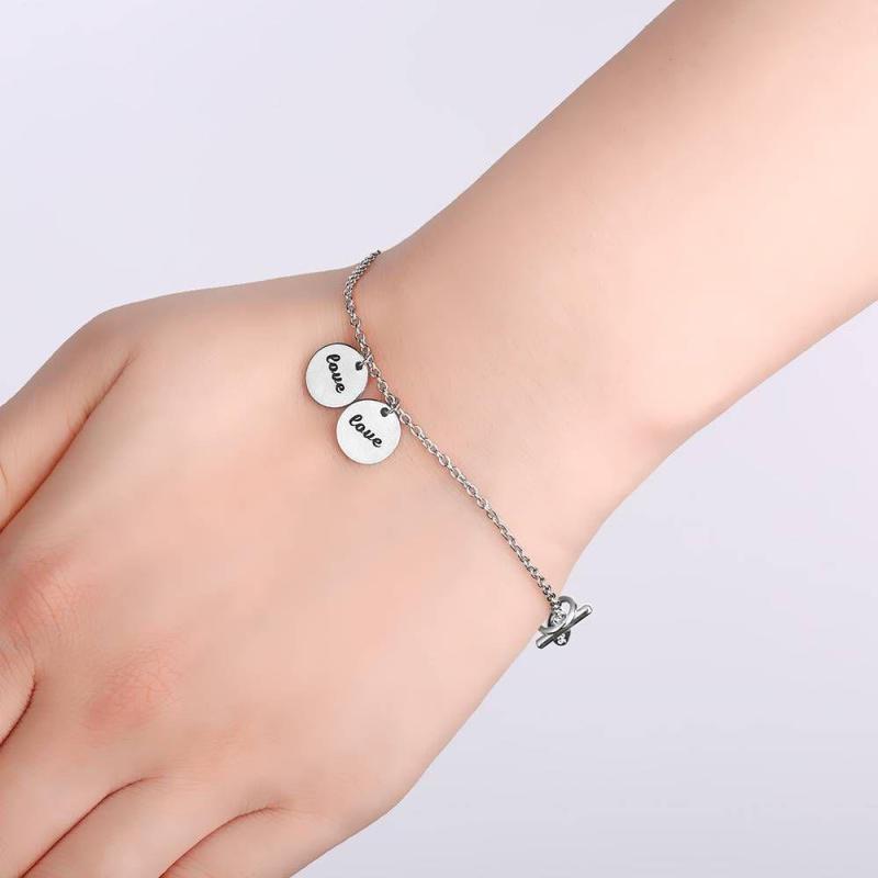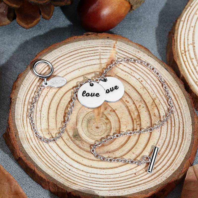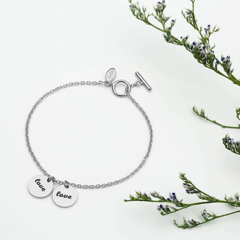 Pulsera de Dos Monedas Grabable Plata - Longitud Ajustable
