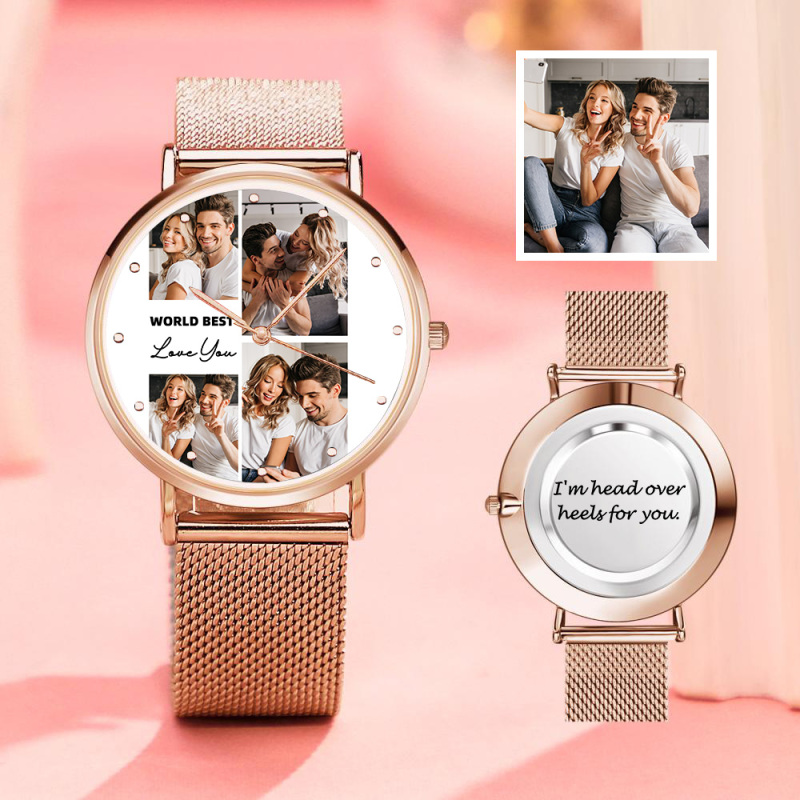 Esfera del reloj: aleación especial y vidrio, diámetro exterior 4 cm (1,57 pulgadas) Correa del reloj: aleación especial, largo 22 cm (8,7 pulgadas), ancho 1,8 cm (0,7 pulgadas) Sorprenda a su ser querido con un reloj fotográfico personalizado que Está hecho a medida para adaptarse a cualquier personalidad. La imagen del diseño está impresa directamente dentro de la superficie del reloj. Una vez que realice un pedido, podrá obtener una vista previa de cómo aparecerá en el reloj. Recuerde que la imagen de alta calidad saldrá mejor que la vista previa. Este reloj con foto personalizado no tiene reembolso una vez hayamos iniciado el proceso de fabricación. Un reloj fotográfico personalizado siempre es un gran regalo y nunca pasará de moda. ¡Compra el tuyo hoy!