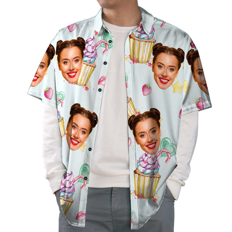 Camisa Hawaiana Con Cara Personalizada, Camisa De Vacaciones De Verano Con Helado Y Fresa, Unisex