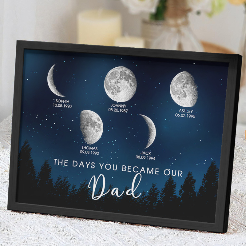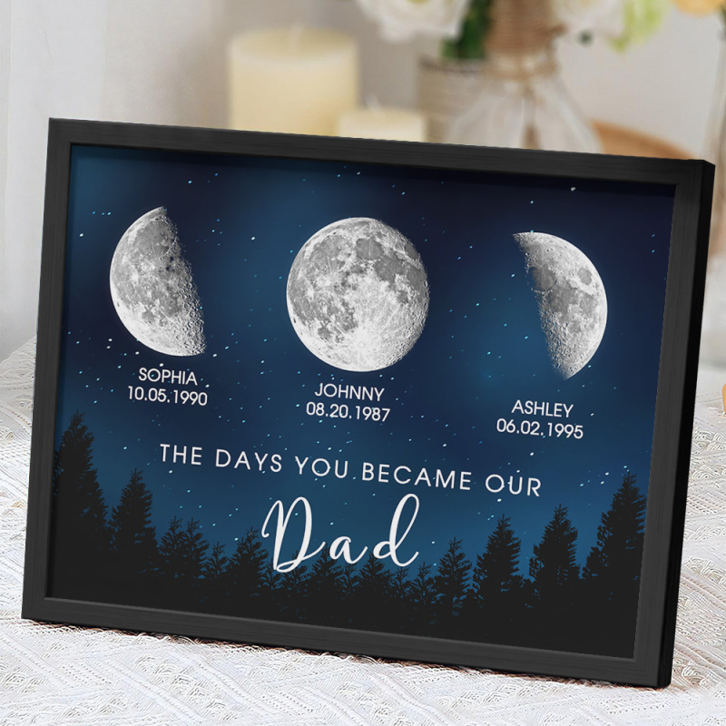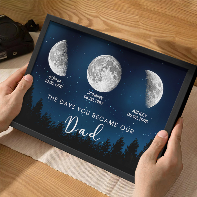 Este póster personalizado de las fases lunares es la manera perfecta de celebrar el amor incondicional de papá este Día del Padre 2025. El nombre, la fecha de nacimiento y la fase lunar única de cada niño se presentan con gran belleza, creando un recuerdo celestial único que honra los momentos especiales que lo convirtieron en padre.Por qué a papá le encantará este regalo: Profundamente personal: incluye la fase lunar, el nombre y la fecha de nacimiento de cada niño para darle un toque sentimental.Simbólico y atemporal: un homenaje significativo a los momentos que cambiaron su vida para siempre.Diseño elegante: una hermosa obra de arte minimalista que complementa cualquier decoración del hogar.Regalo perfecto para el Día del Padre: un detalle especial, único y hecho especialmente para él.