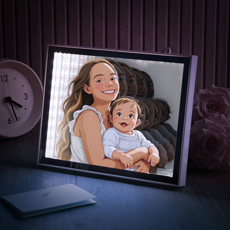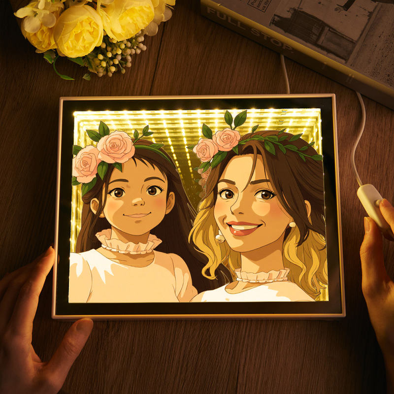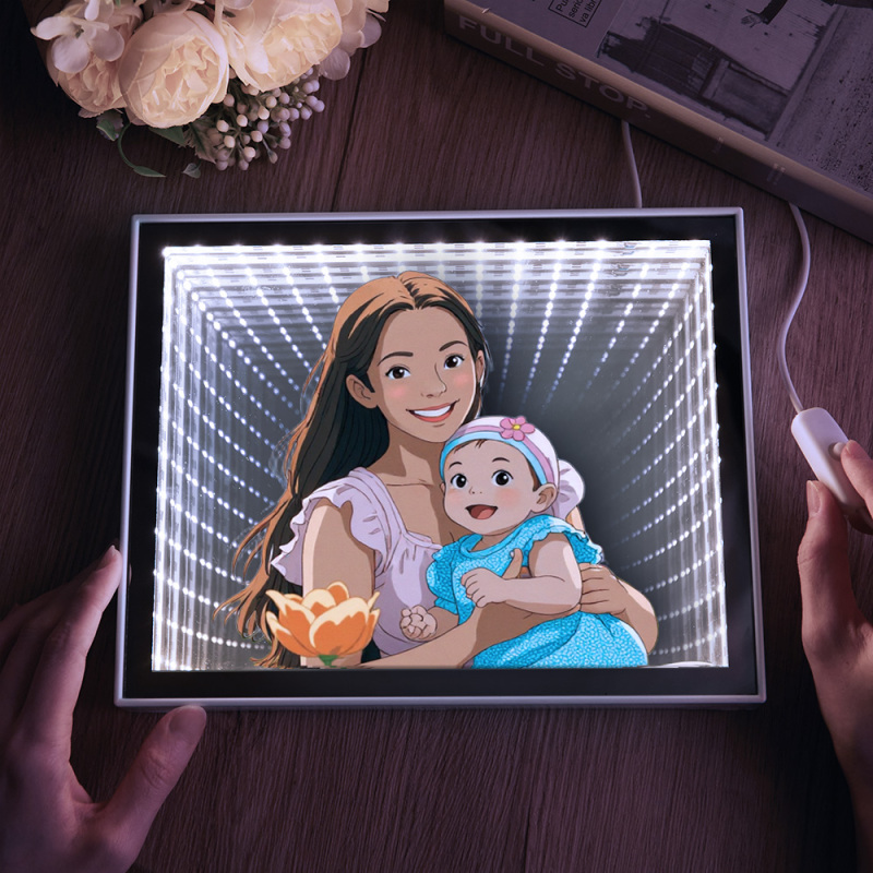 Luz De Noche Con Espejo Estilo Gibli Personalizada, Luz De Noche Con Foto Personalizada, El Mejor Regalo Para Ella