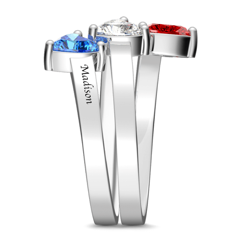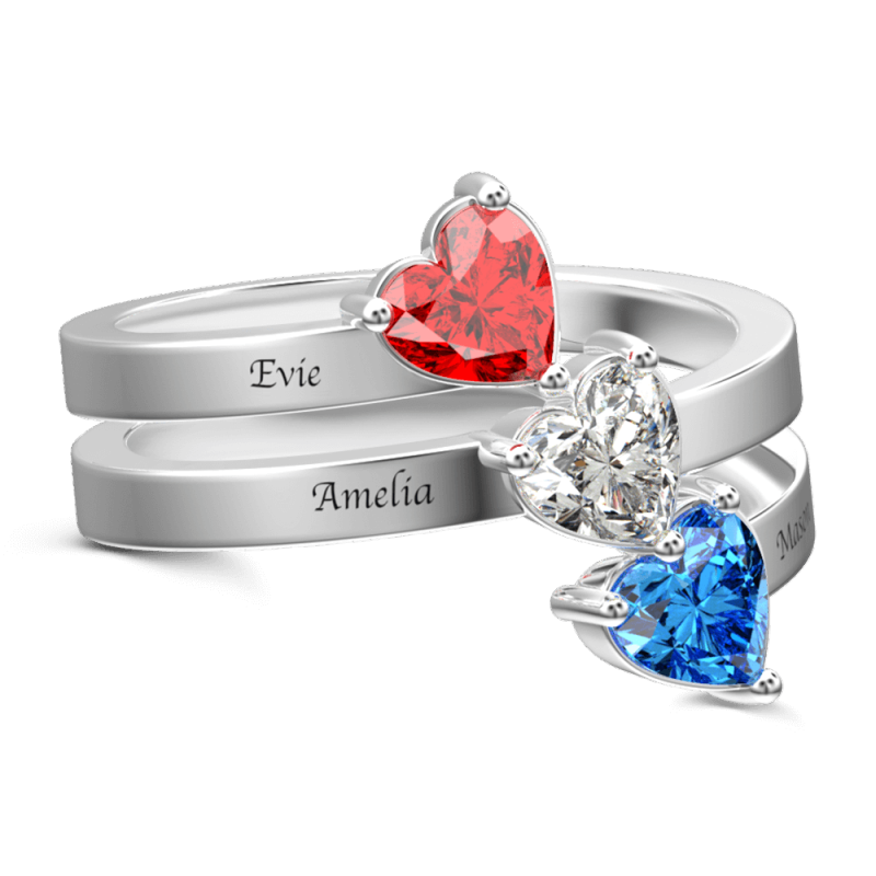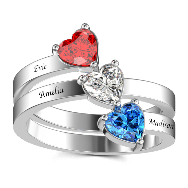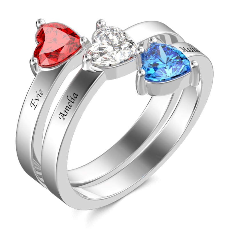Anillo de promesa de piedra natal de corazón personalizado con plata grabada