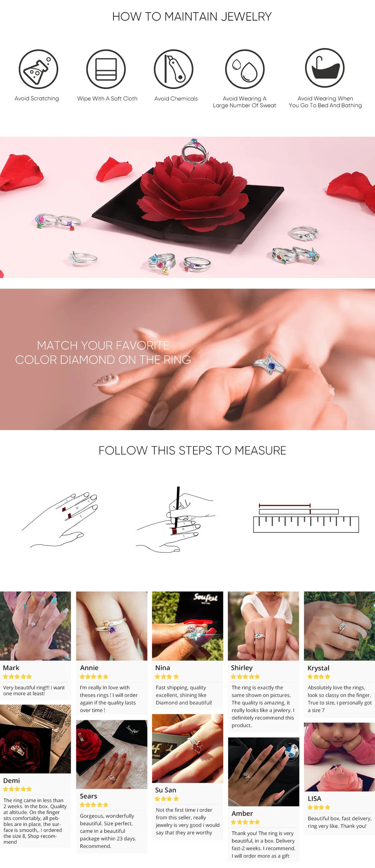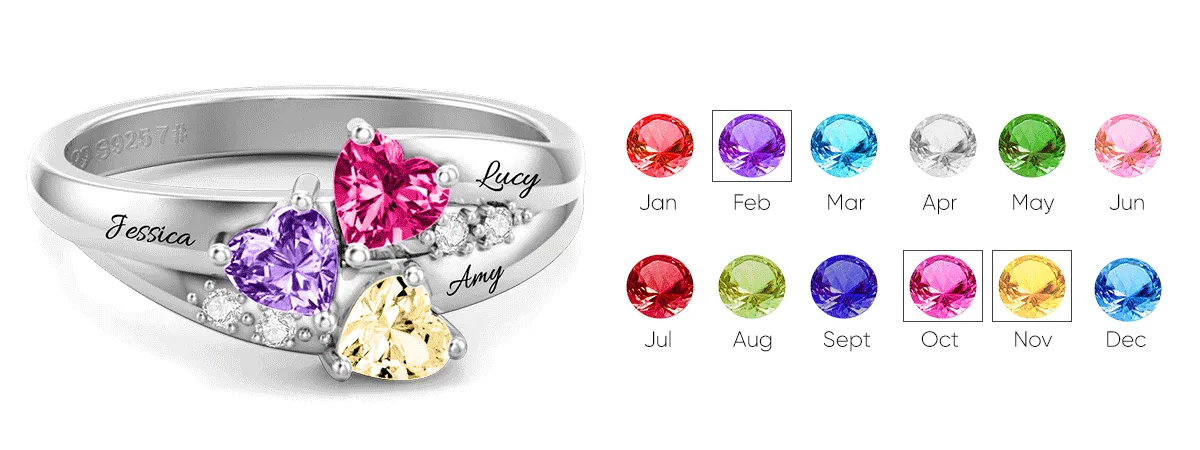 Anillo de promesa de piedra natal de corazón personalizado con plata grabada