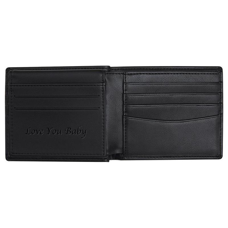 Cartera de Cuero Personalizada Cepillo Antirrobo Cartera con Protección Rfid Cartera de Retrato Personalizada para Hombre - Negro