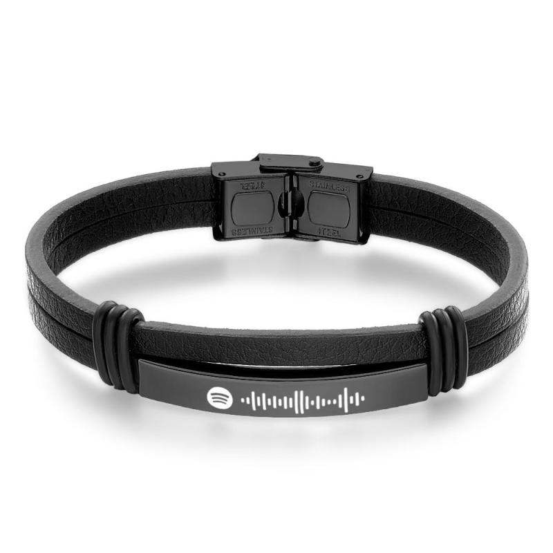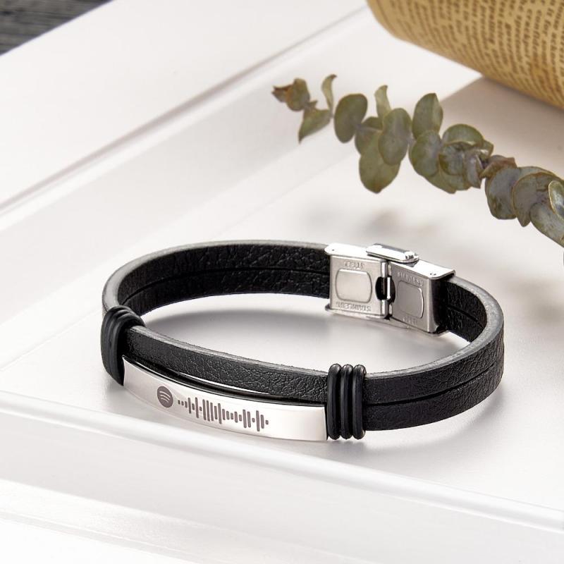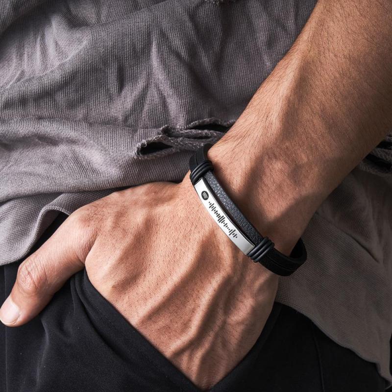 Esta pulsera de cuero Music Code es una pulsera de barra atemporal para hombre, hecha a medida con un código de canción único. La idea de regalo perfecta para él para celebrar el amor, la amistad o la familia, es una opción ideal para ocasiones especiales como el Día del Padre, San Valentín, bodas, aniversarios, cumpleaños y Navidad. Déjale lucir esta elegante pulsera con orgullo.