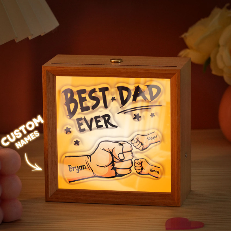 Luz De Espejo Personalizada, Luz De Noche Con Espejo De Puño Personalizado, Nombres De Niños Personalizados, El Mejor Regalo Para El Día Del Padre.