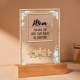 La lámpara de noche personalizada está hecha de -Acrílico de calidad, no de vidrio, que es resistente y duradero. Este material se puede utilizar durante mucho tiempo y no se daña fácilmente, puede acompañar a tu mamá todas las noches.