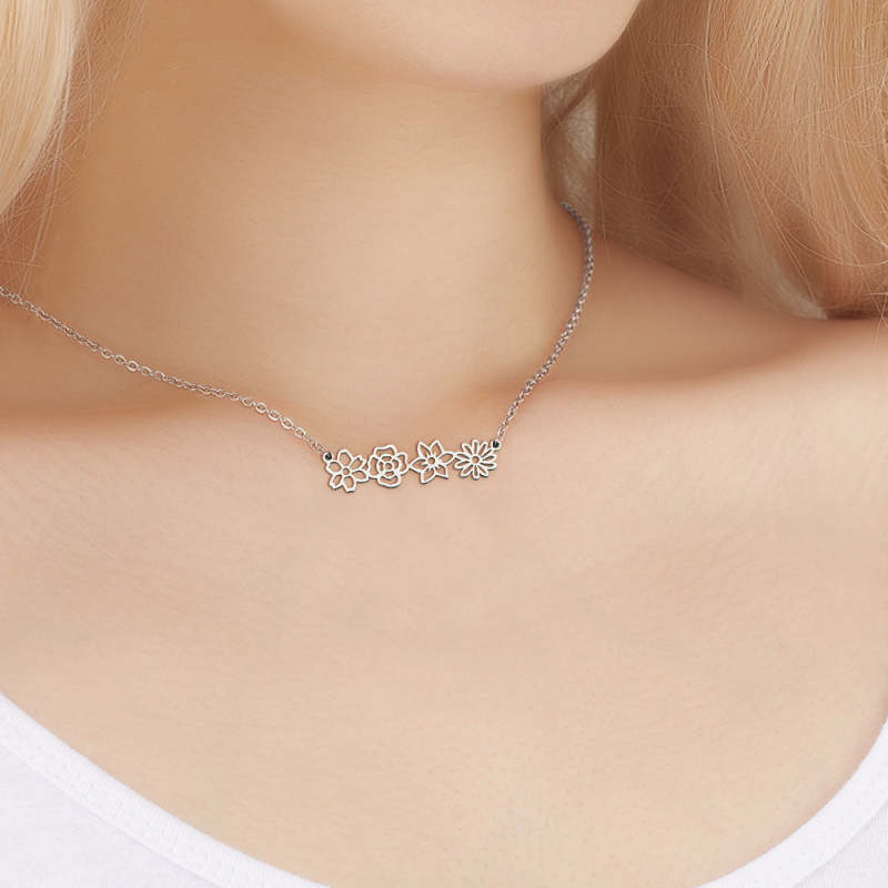 El collar personalizado de flores de nacimiento en plata de ley tiene un diseño moderno con delicados dijes de flores que representan a su familia y amigos. Un regalo perfectamente único para que la persona más especial de tu vida lo aprecie para siempre.
